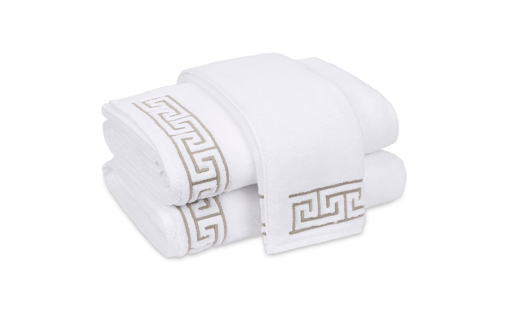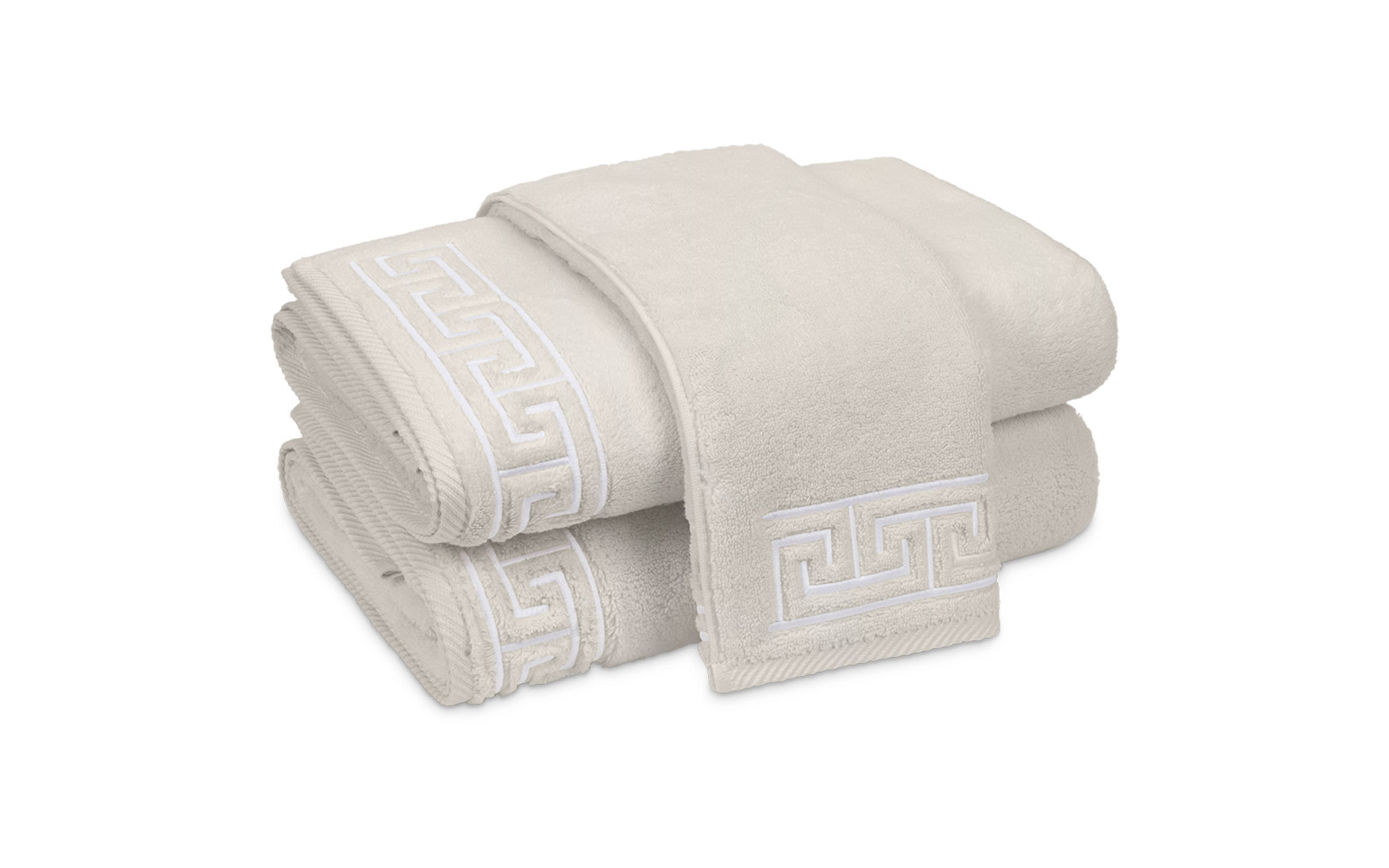 Adelphi's signature geometric frame embroidery is stitched onto our ultra-soft and plush Milagro towel. Sitting at the crossroads of classic and contemporary, Adelphi is our only stocked bath embroidery available on a solid colored base and the first to grace Milagro – making it all the more special.