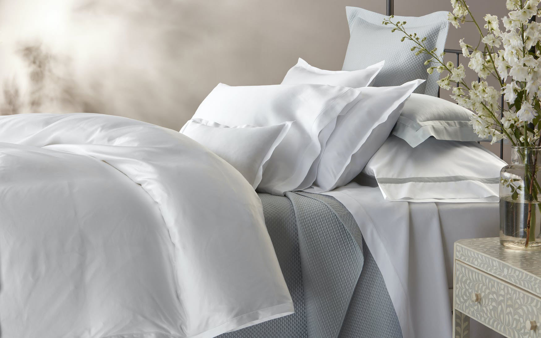 A delicate, small-scale quilted design adds sumptuous texture to our popular Nocturne sateen bedding. A fresh, modern take on a classic look, Alba adds subtle polish and character to any and all Matouk bedding.