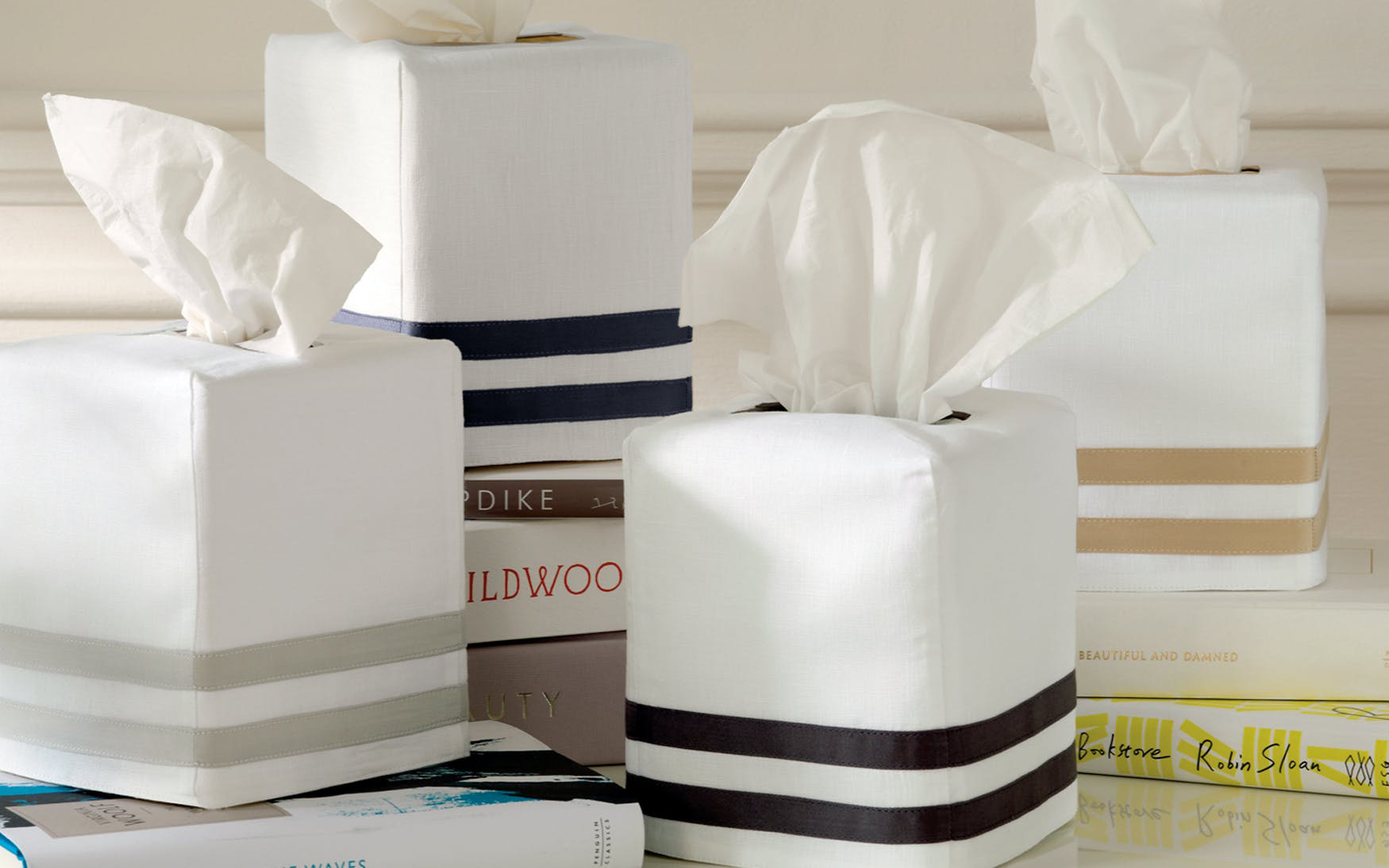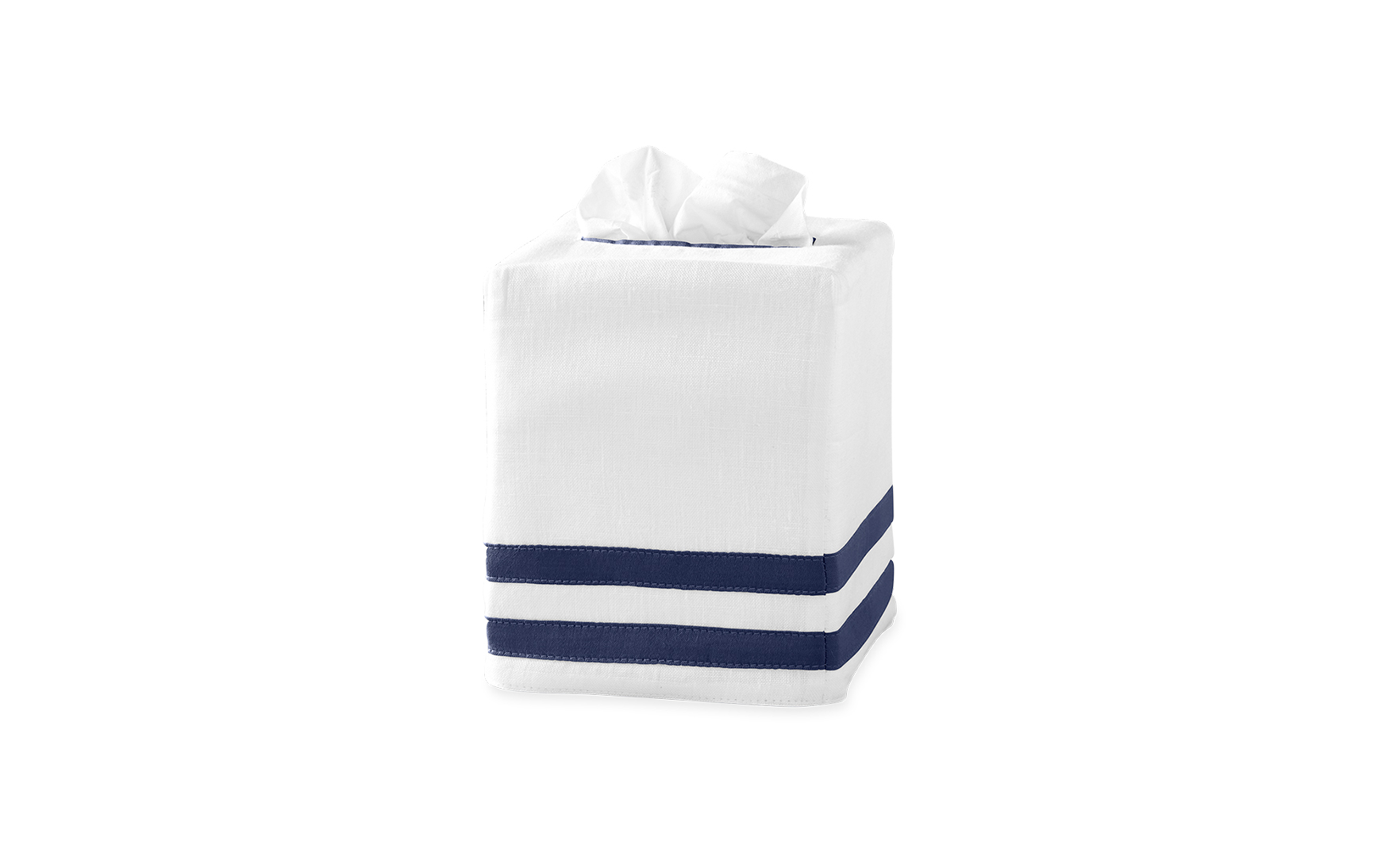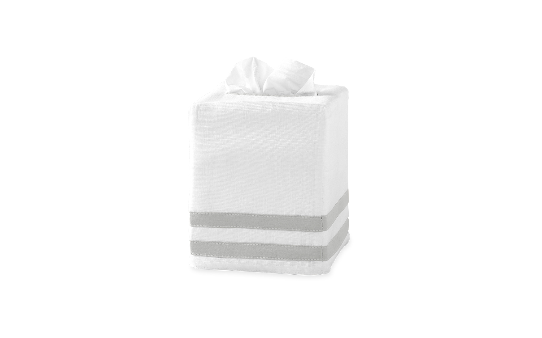 In 100% linen with a sateen appliqué trim in two finely crafted rows, the Allegro tissue box cover pairs with the bedding collection of the same name. In a home where no detail goes unconsidered, this finely tailored style makes a beautiful addition to a bedroom or bathroom.