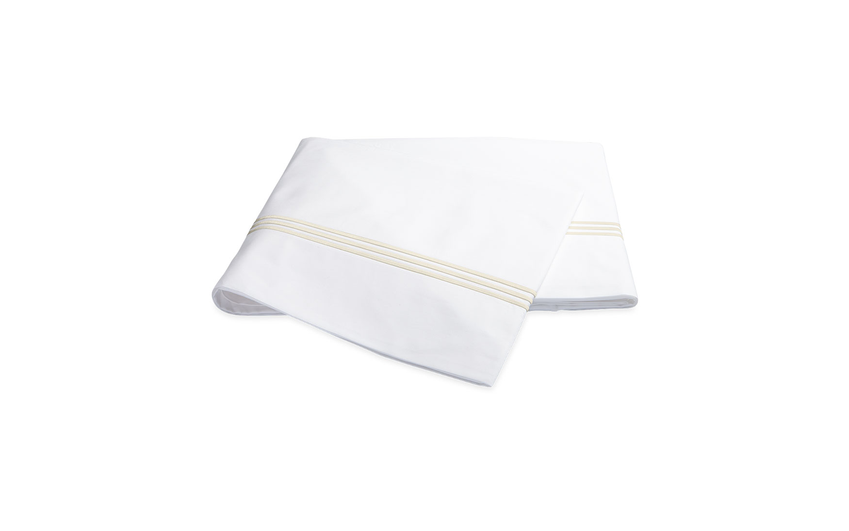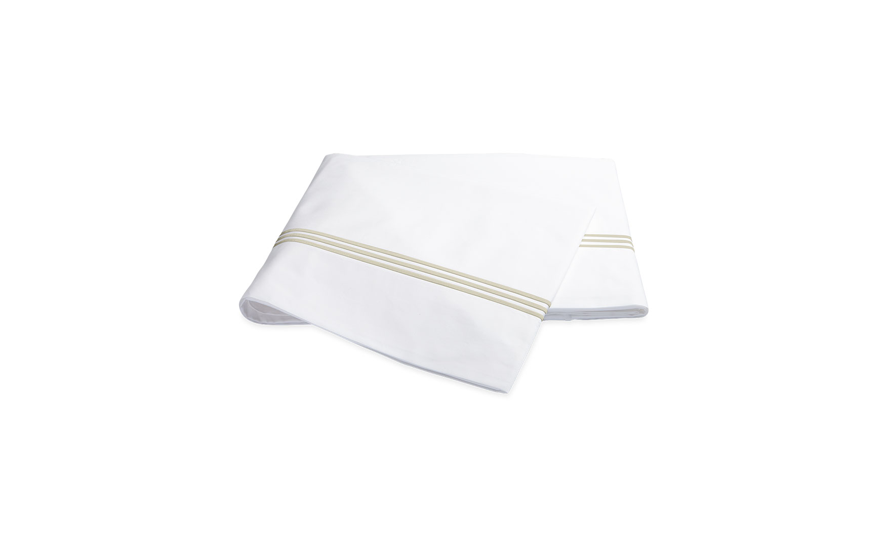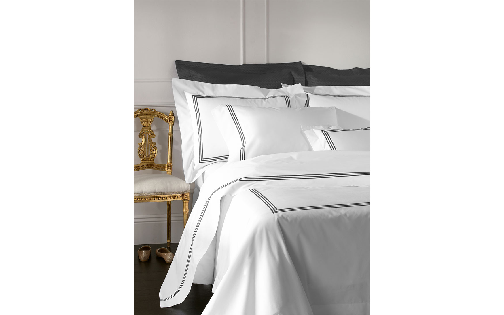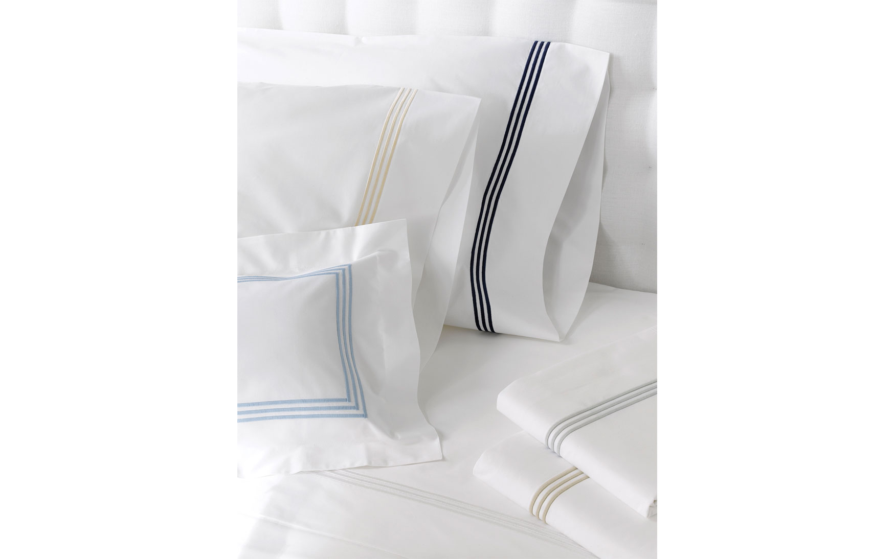 Bel Tempo recreates the look of a luxury hotel bed. Our crisp, white 350 thread count Sierra percale sheeting is adorned with three embroidered stripes, combining modern style and classic design.