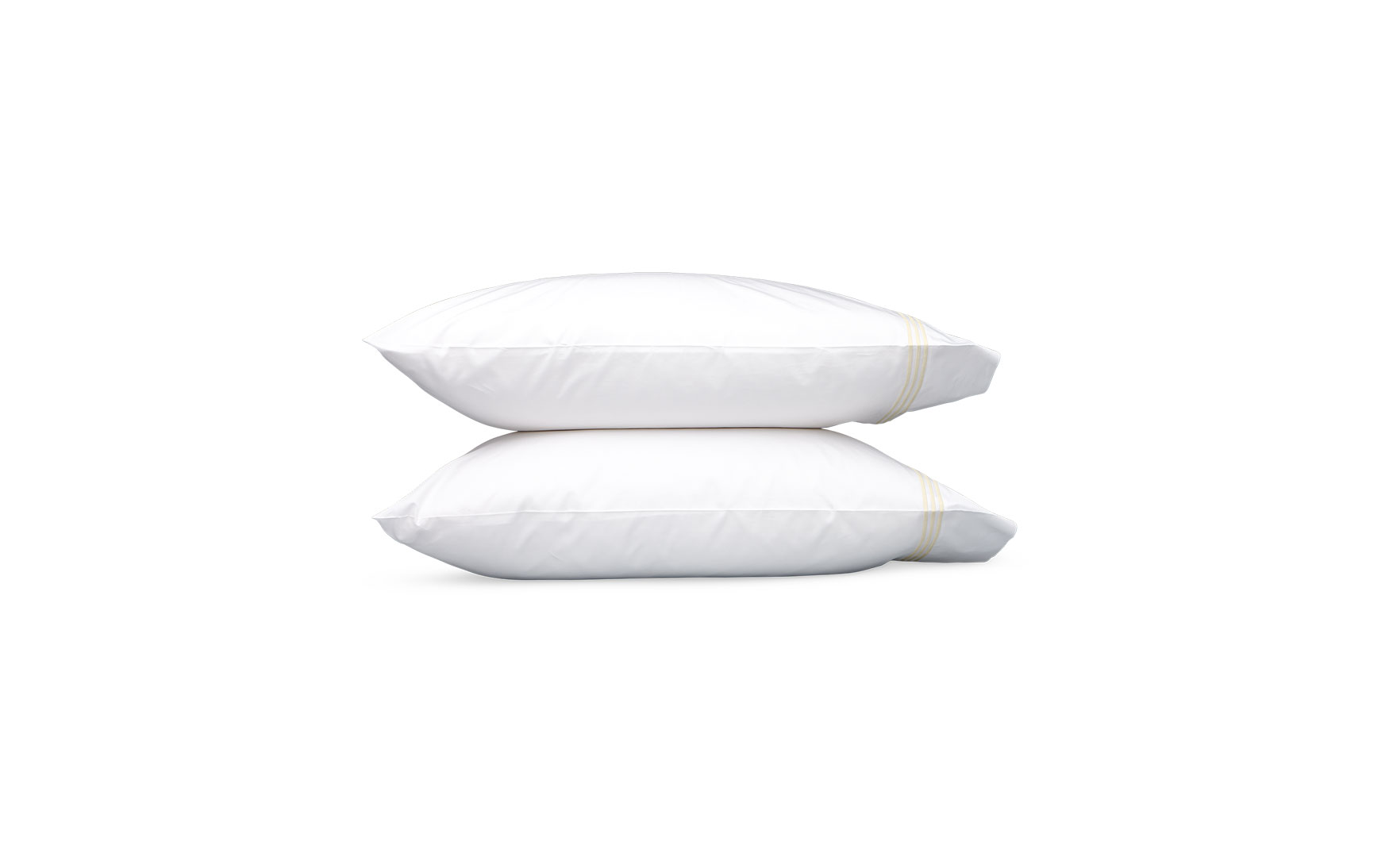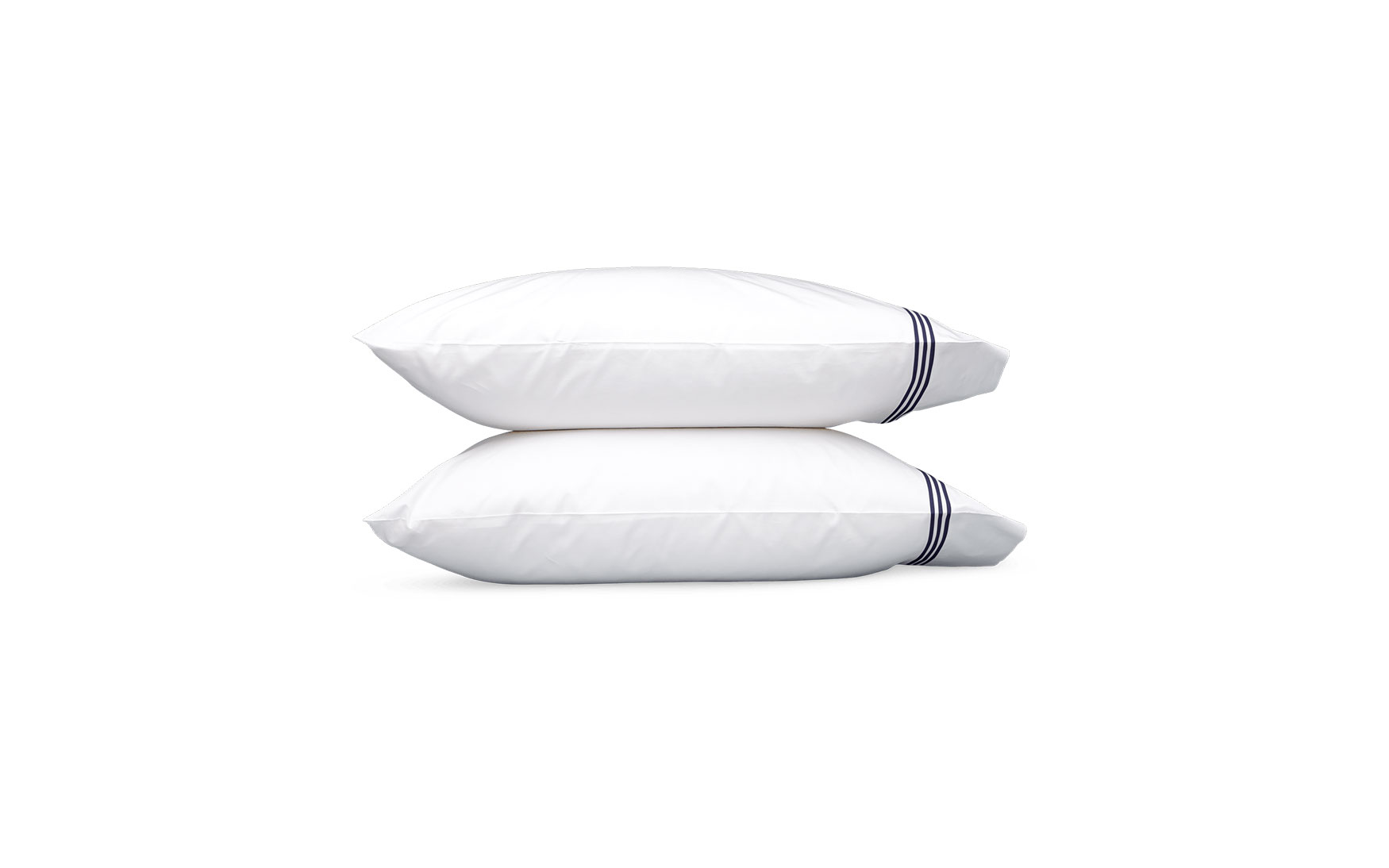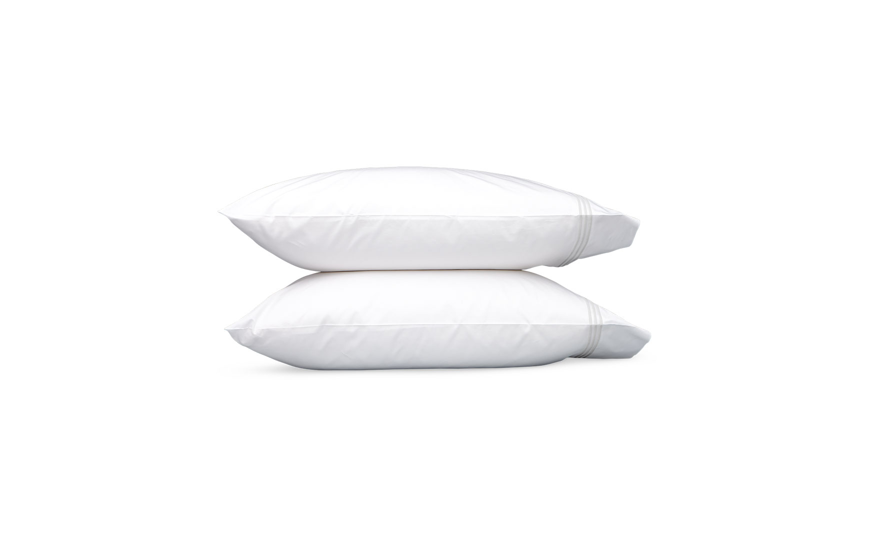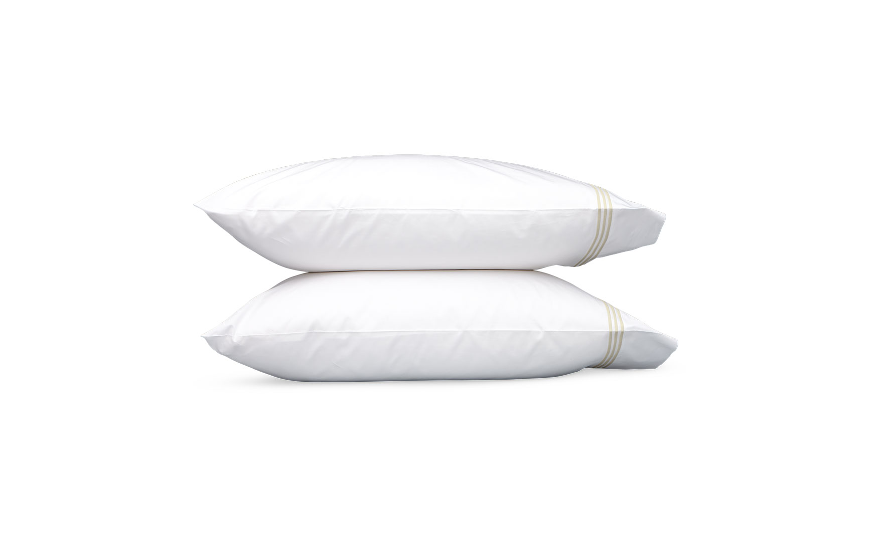 Bel Tempo recreates the look of a luxury hotel bed. Our crisp, white 350 thread count Sierra percale sheeting is adorned with three embroidered stripes, combining modern style and classic design.