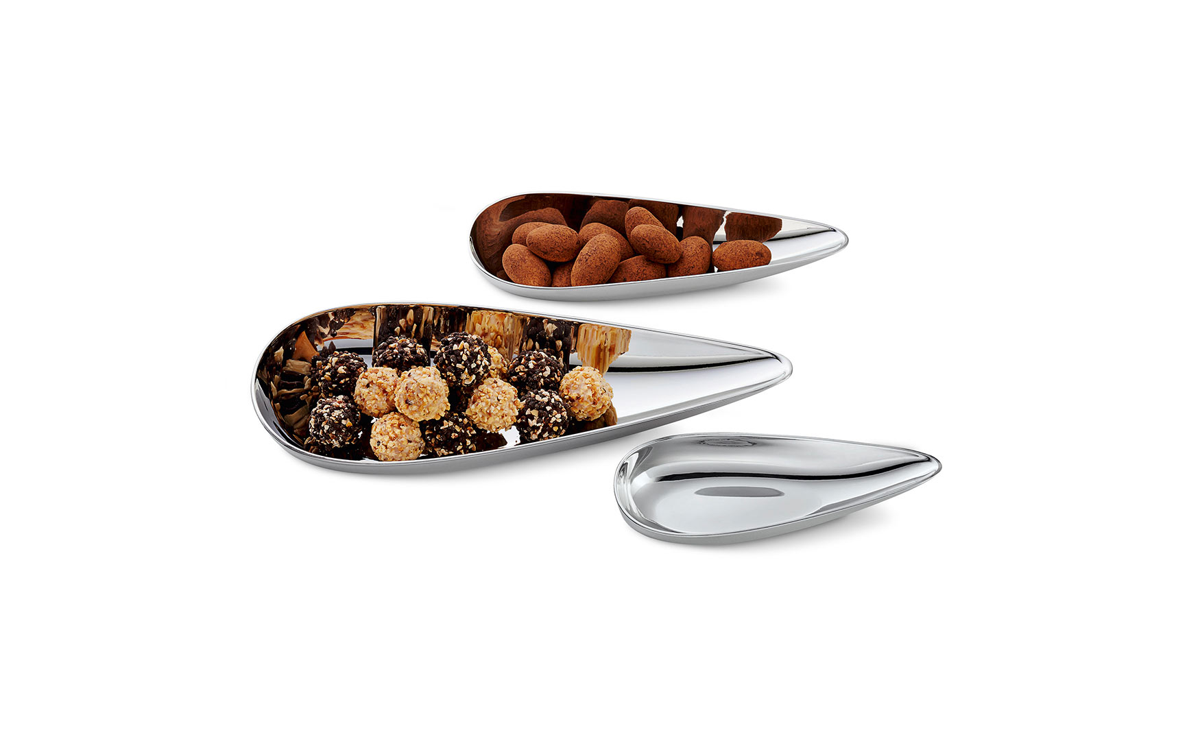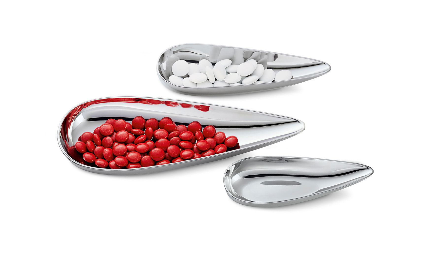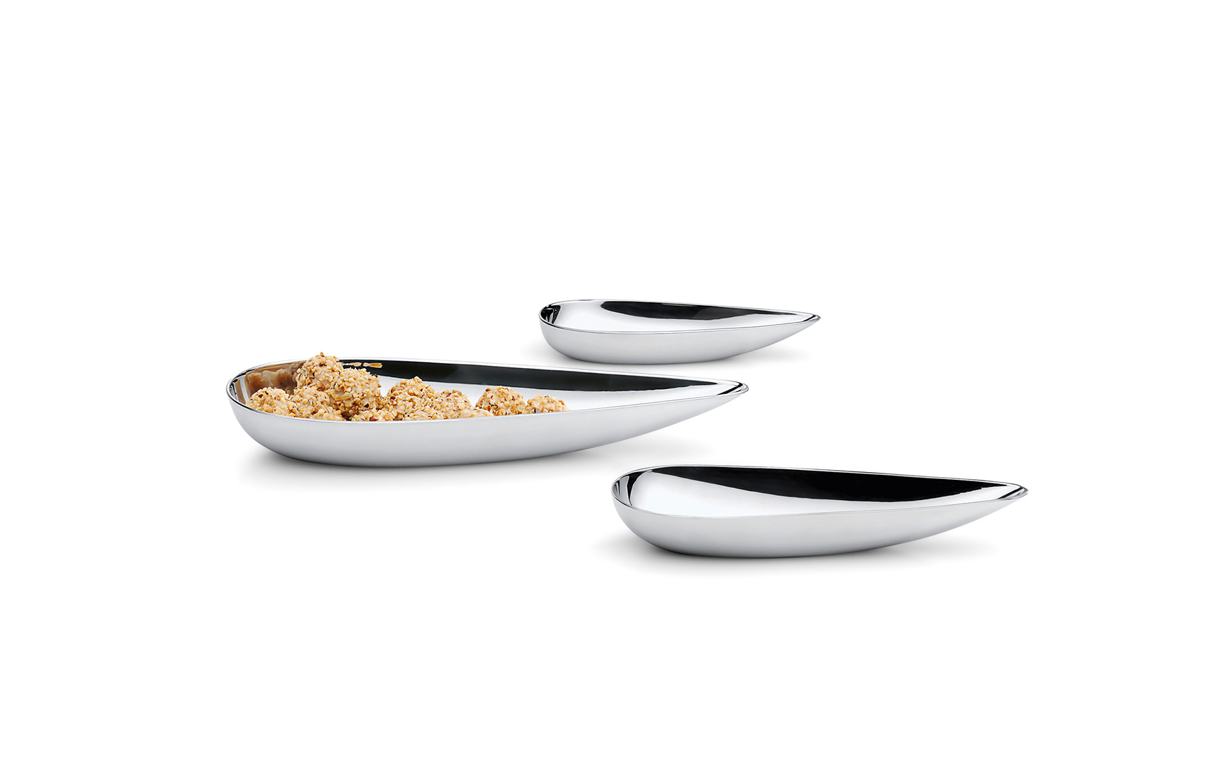 The 3-pieces BLOB bowl set is a true heavyweight in matters of temptation. The mirror-polished, teardrop-shaped bowls present all kinds of tasty goodies! And on top of that, they are very comfortable to hold, regardless of whether the content is sweet or salty. BLOB literally invites you to help yourself and makes sharing at any party or event even more fun!