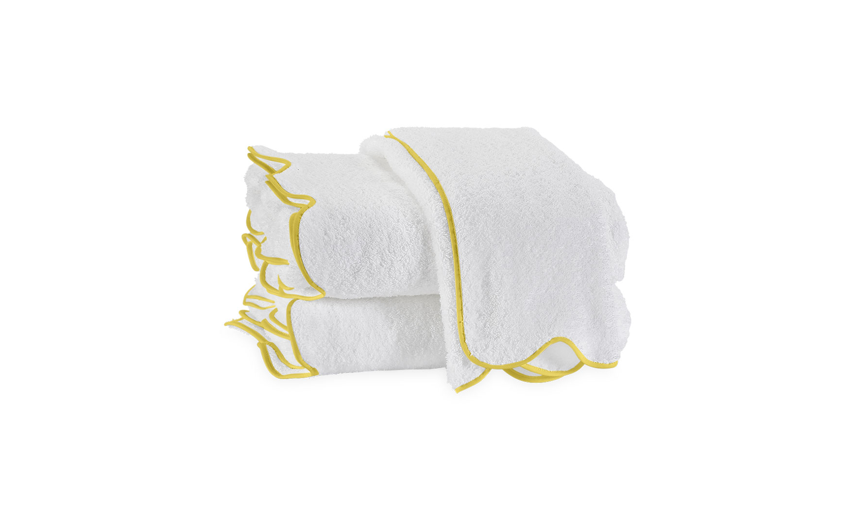 In the Cairo collection, a simple design is simply beautiful. Its pure, plush long-staple cotton terry is unadorned but for a 100% cotton piped scallop edge in an array of vibrant hues.