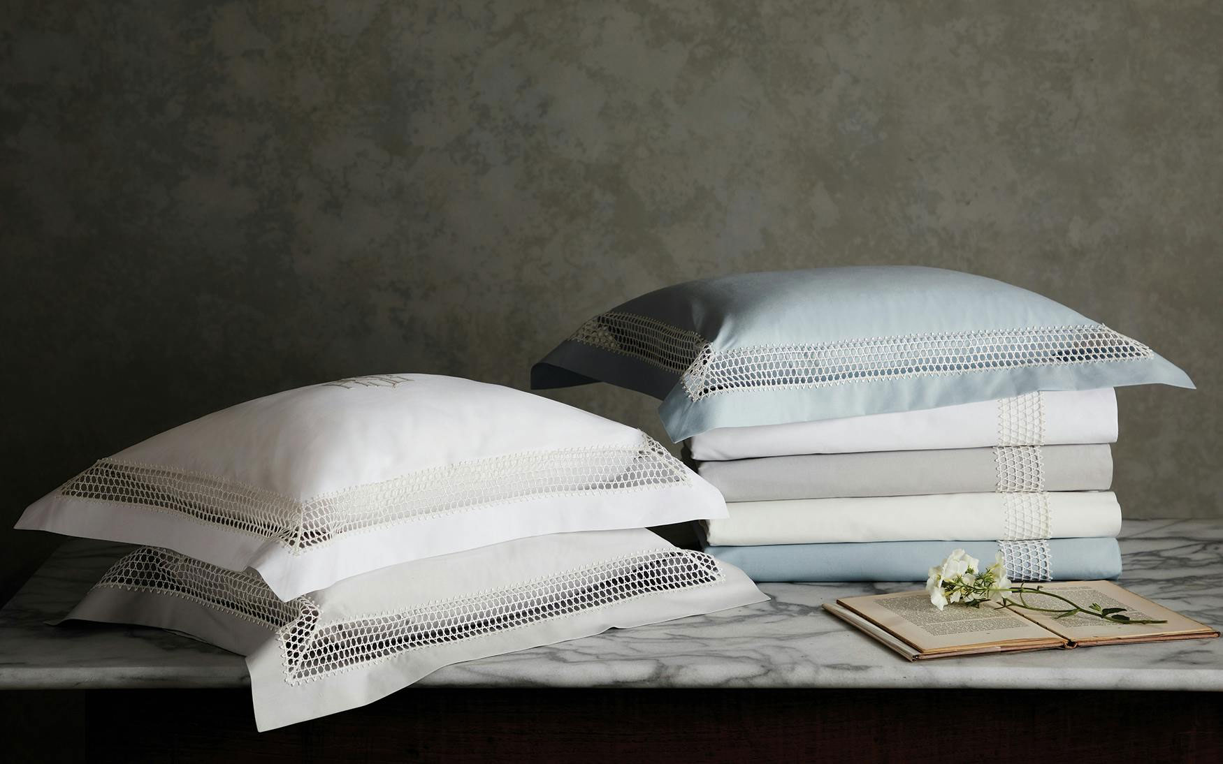 Cecily is the extraordinary marriage of a beloved heritage lace with our dreamiest percale fabric. Superbly crafted in the Philippines, airy, delicate lace adds an element of delight to our incredibly smooth, lightweight 500 thread count Bergamo Giza Egyptian cotton percale, resulting in a style of exquisite beauty.