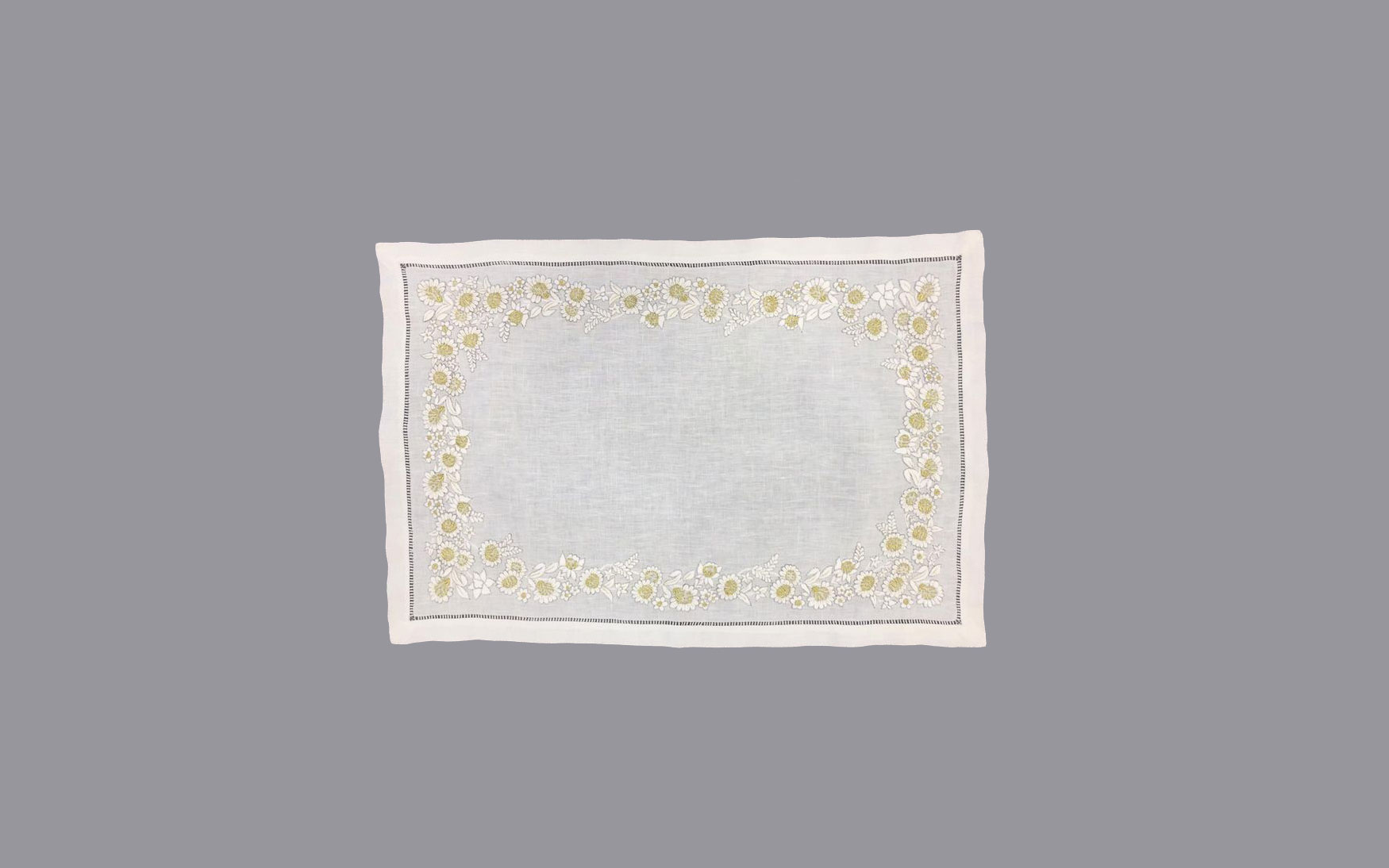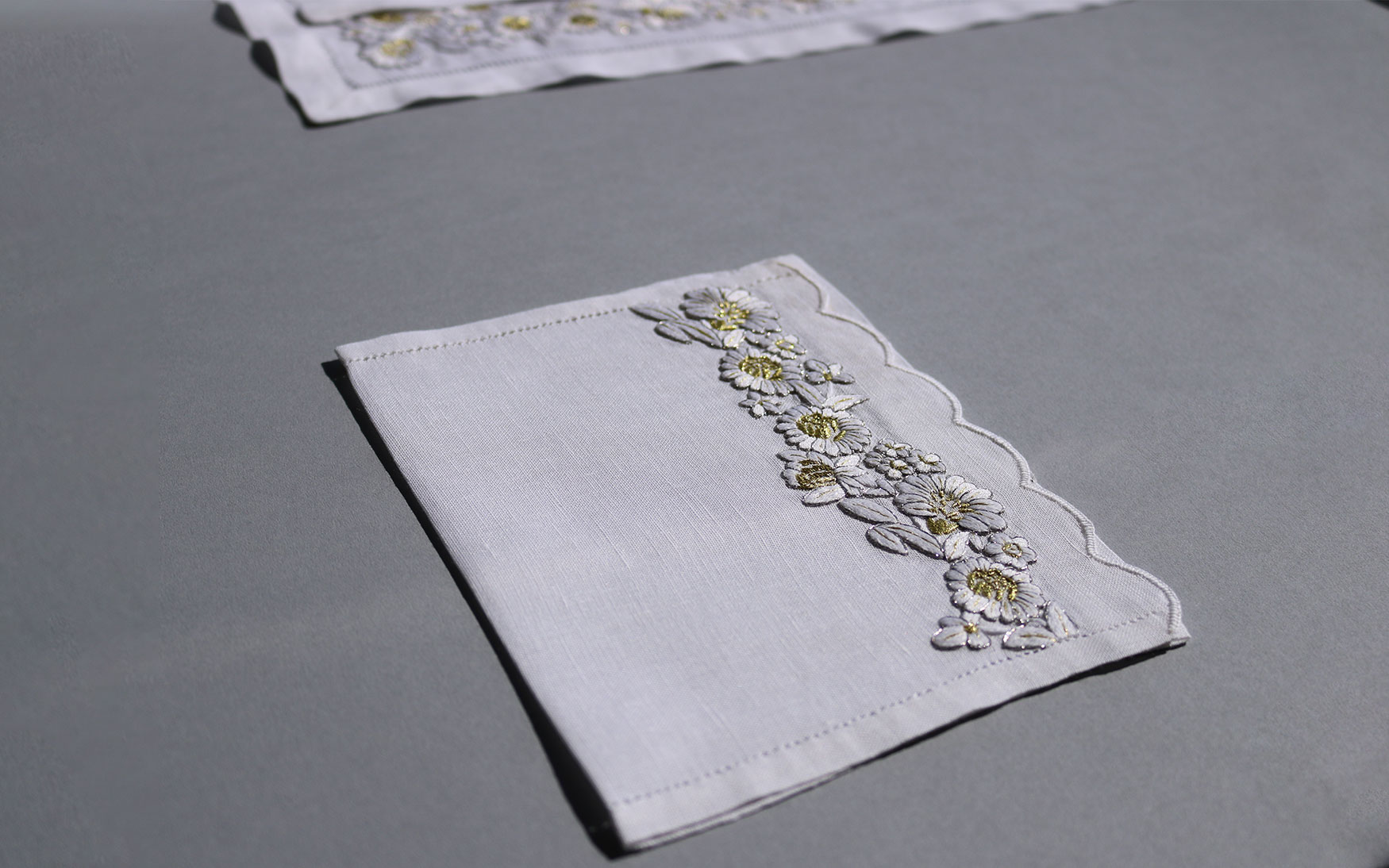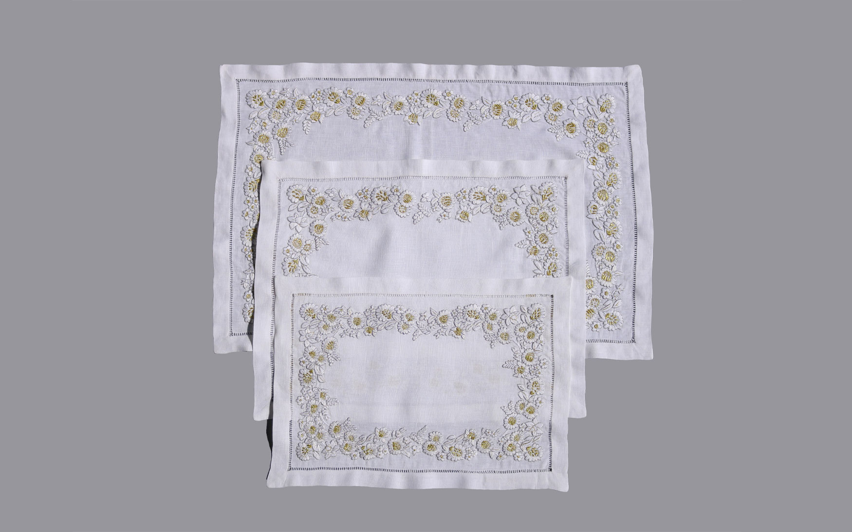 Beautiful Daisy Flowers on white linen with single ajour design.