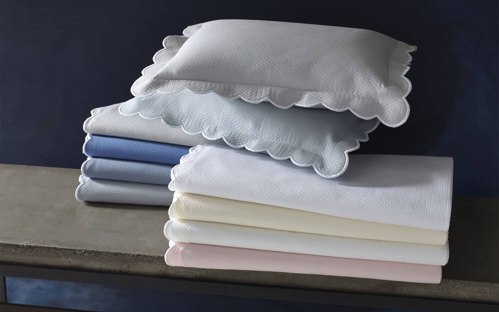 Full of charm and wit, this diamond-patterned pique is the equivalent of the perfect white shirt-in every color. Timeless, textured and always polished, Diamond Pique is made from our easy-care 70% cotton, 30% polyester blend. The small amount of polyester ensures that no ironing is required, while the cotton gives this classic style its luxurious weight. Diamond Pique is finished with an embroidered scallop white trim.