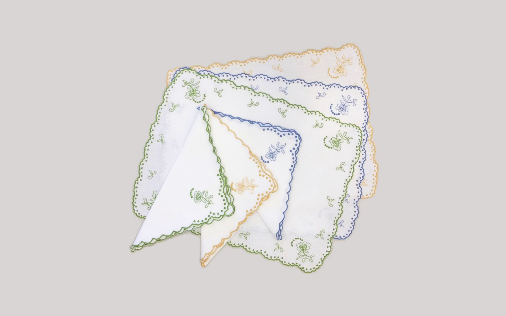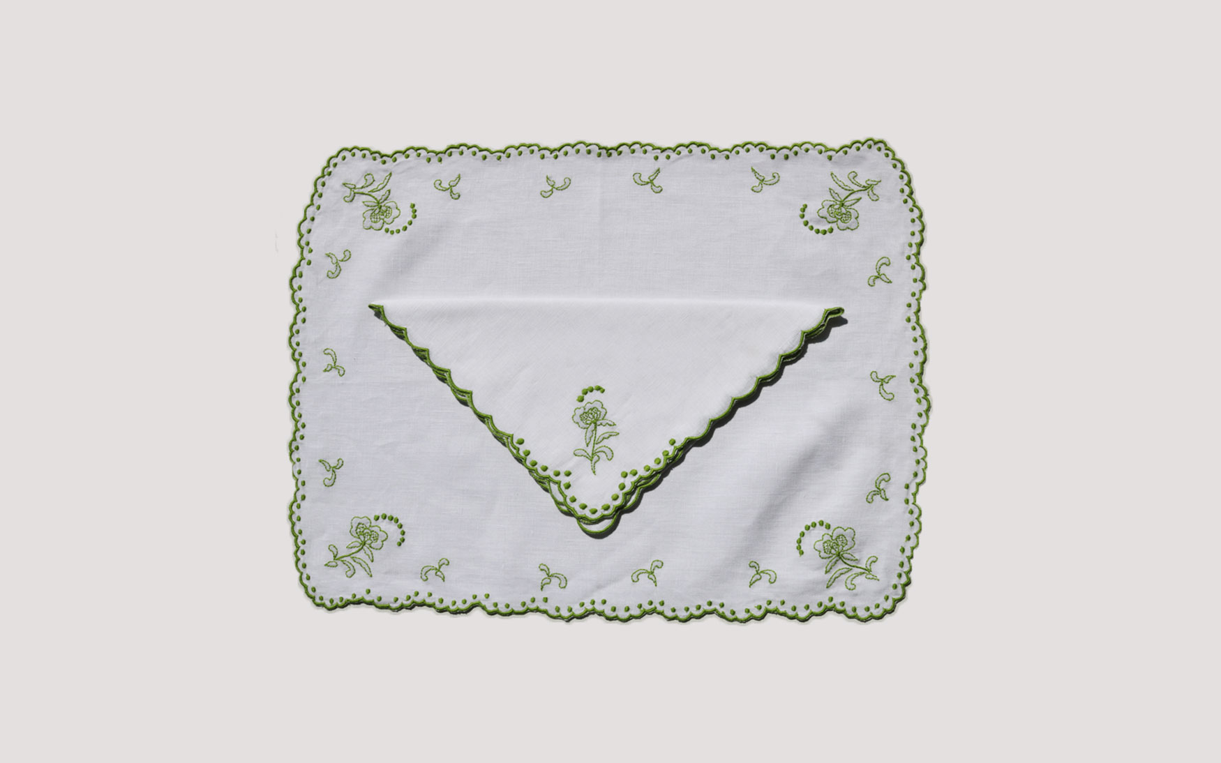 These linen are framed with scalloped edge embroidery border, ensuring a comfortable dining setting for you and your guests.