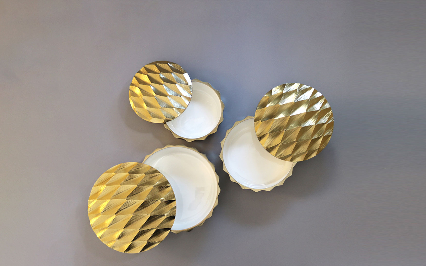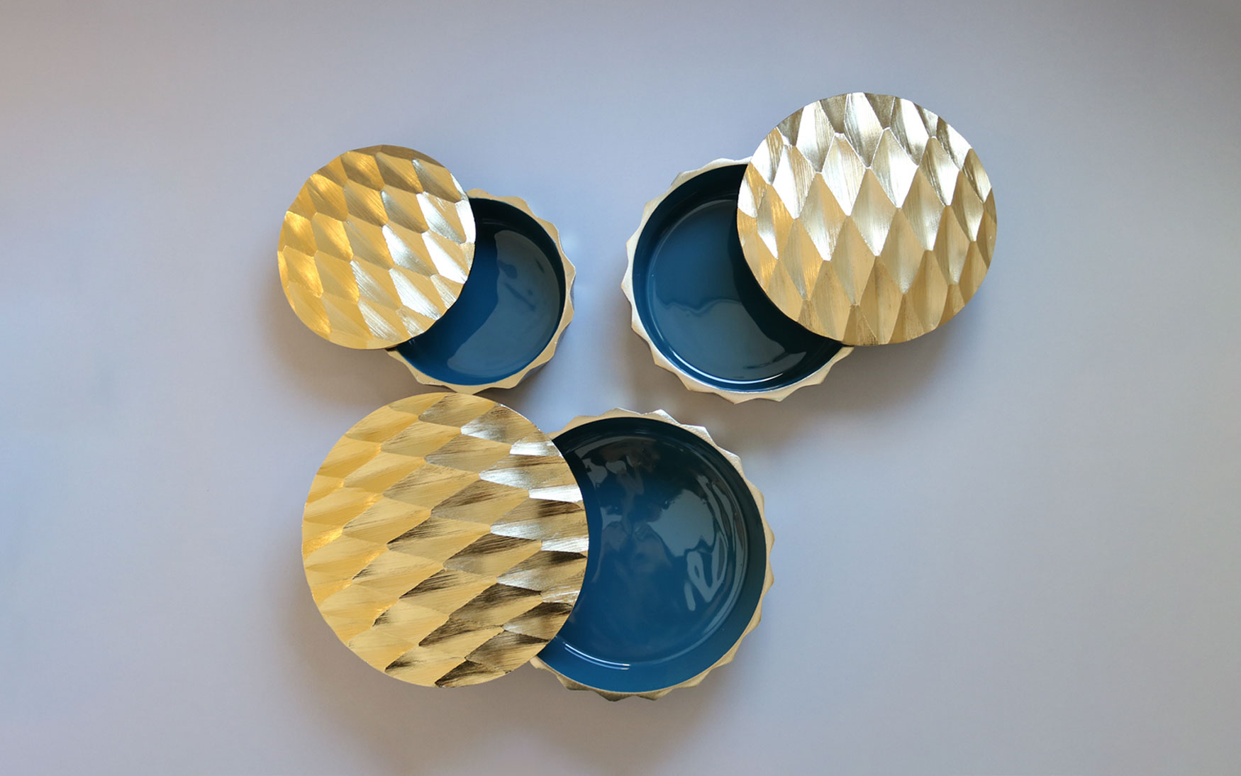Gold Plated Aluminum Bowl with different color enamel inside.