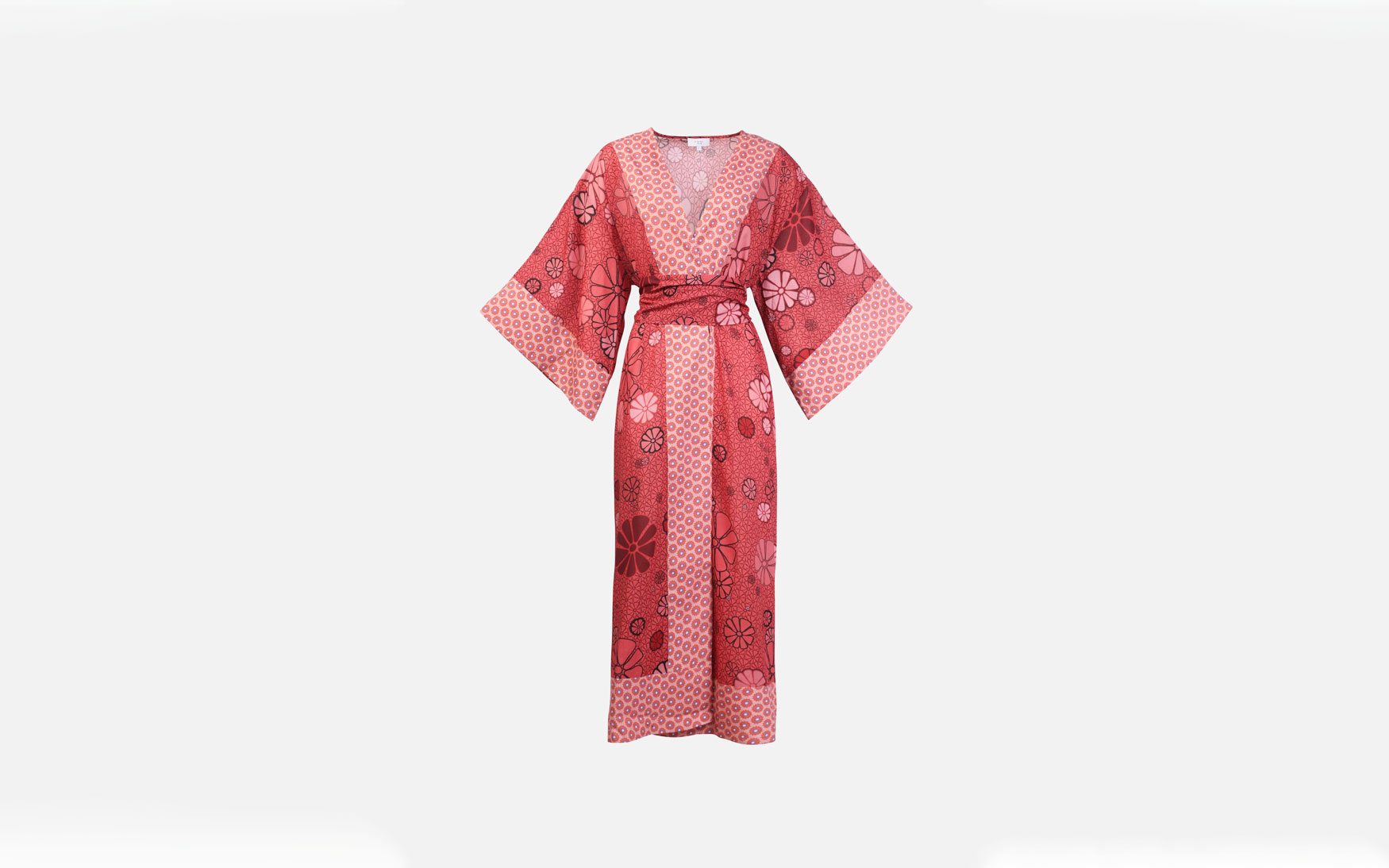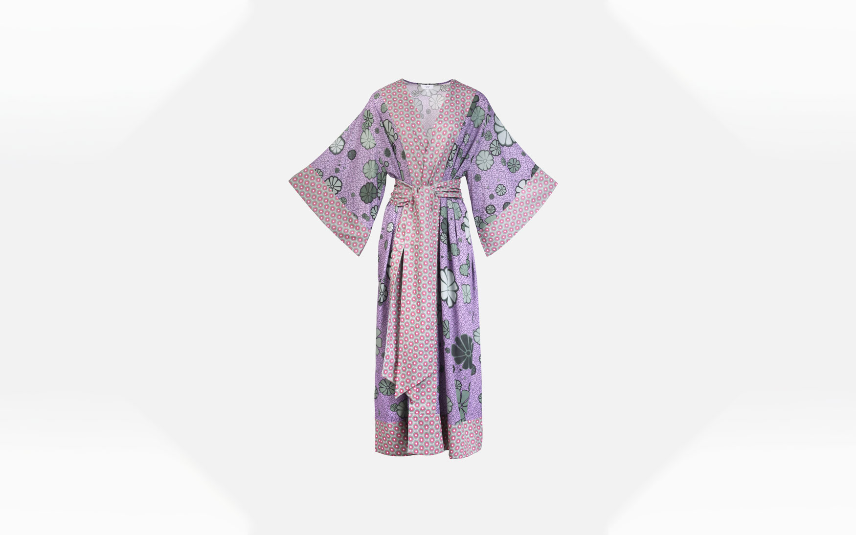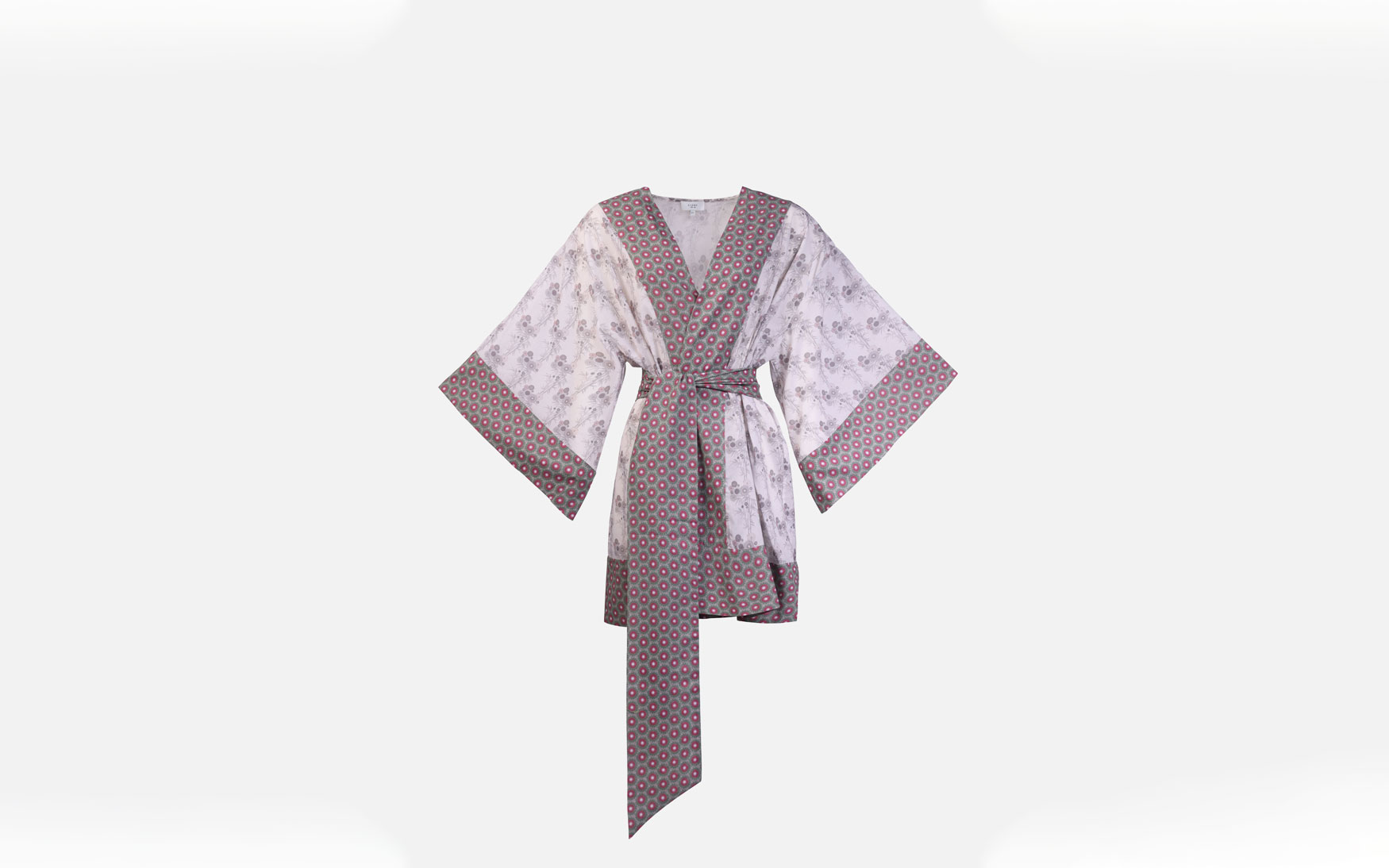 A beautiful free size long printed kimono made in pure cotton with a detachable large belt and exaggerated sleeves.