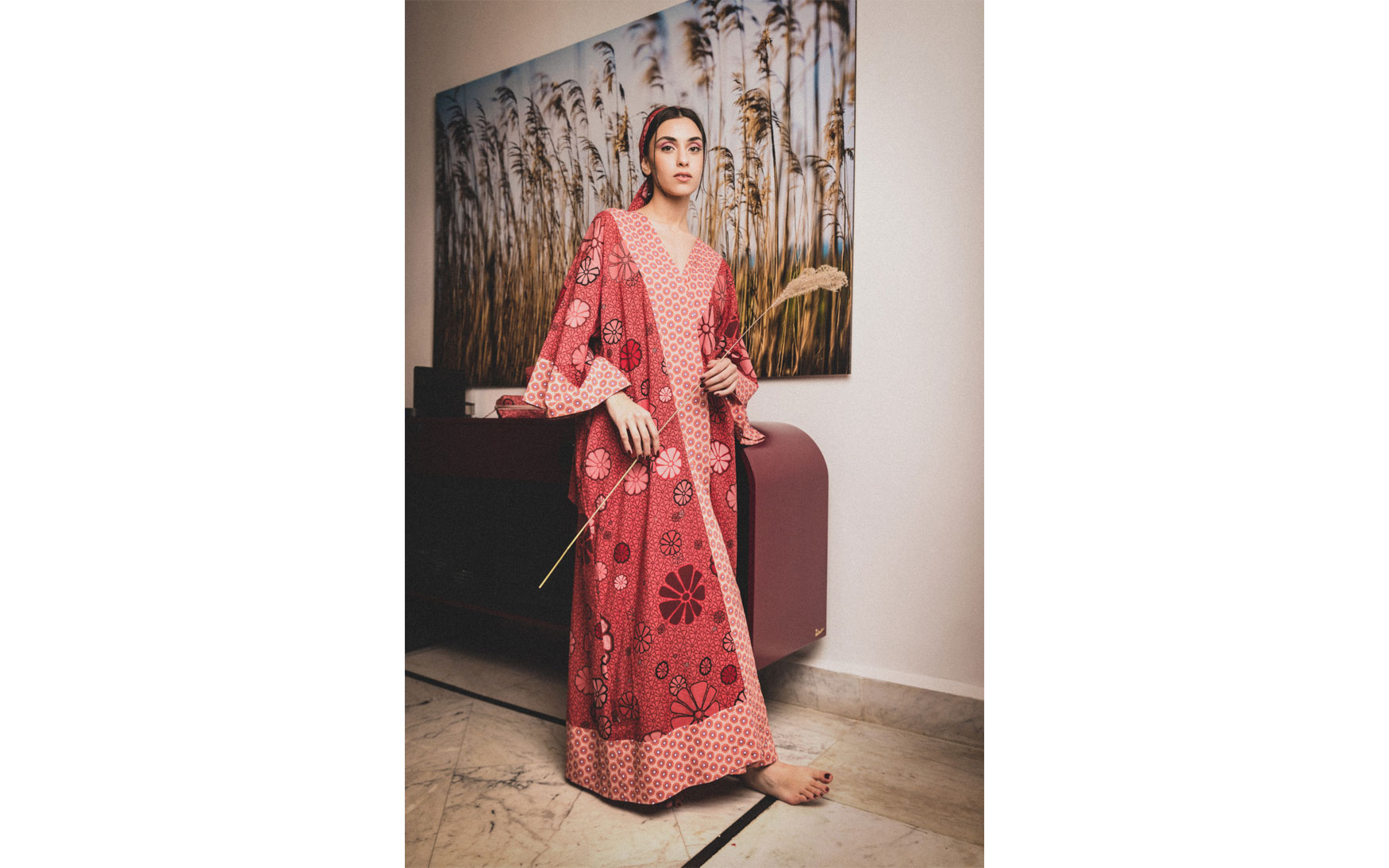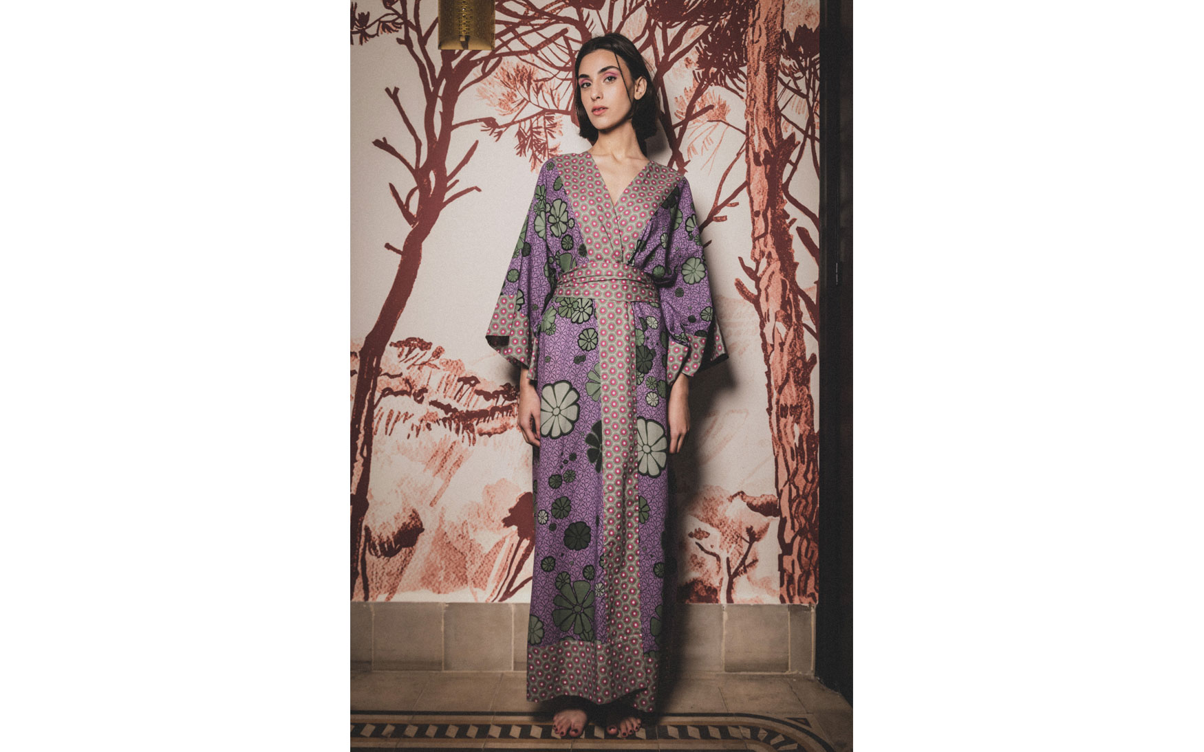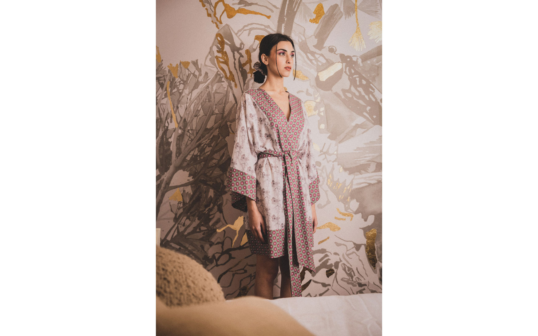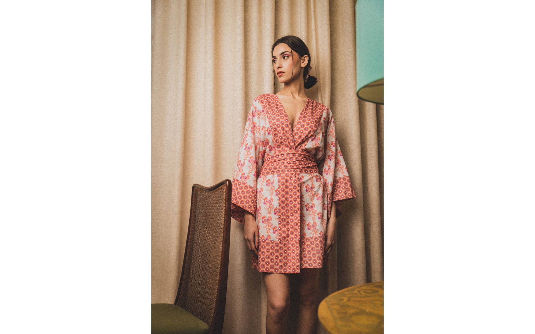 A beautiful free size long printed kimono made in pure cotton with a detachable large belt and exaggerated sleeves.