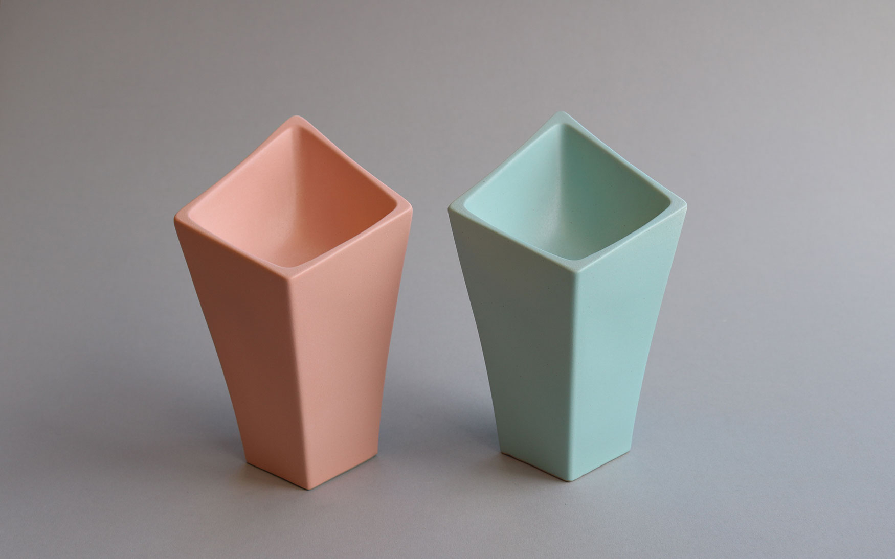 Kubbar small size ceramic incense burner in matt pastel light blue amd light pink.