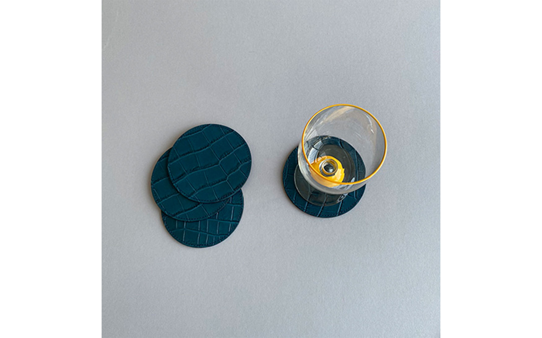100% genuine Italian leather coasters with a crocodile embossed print.
