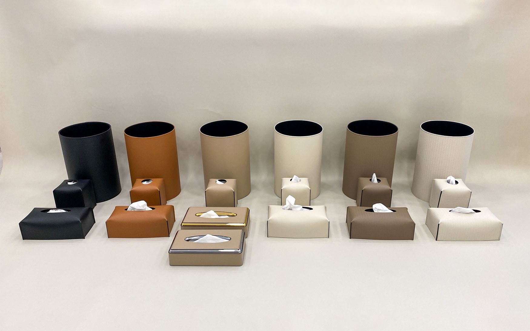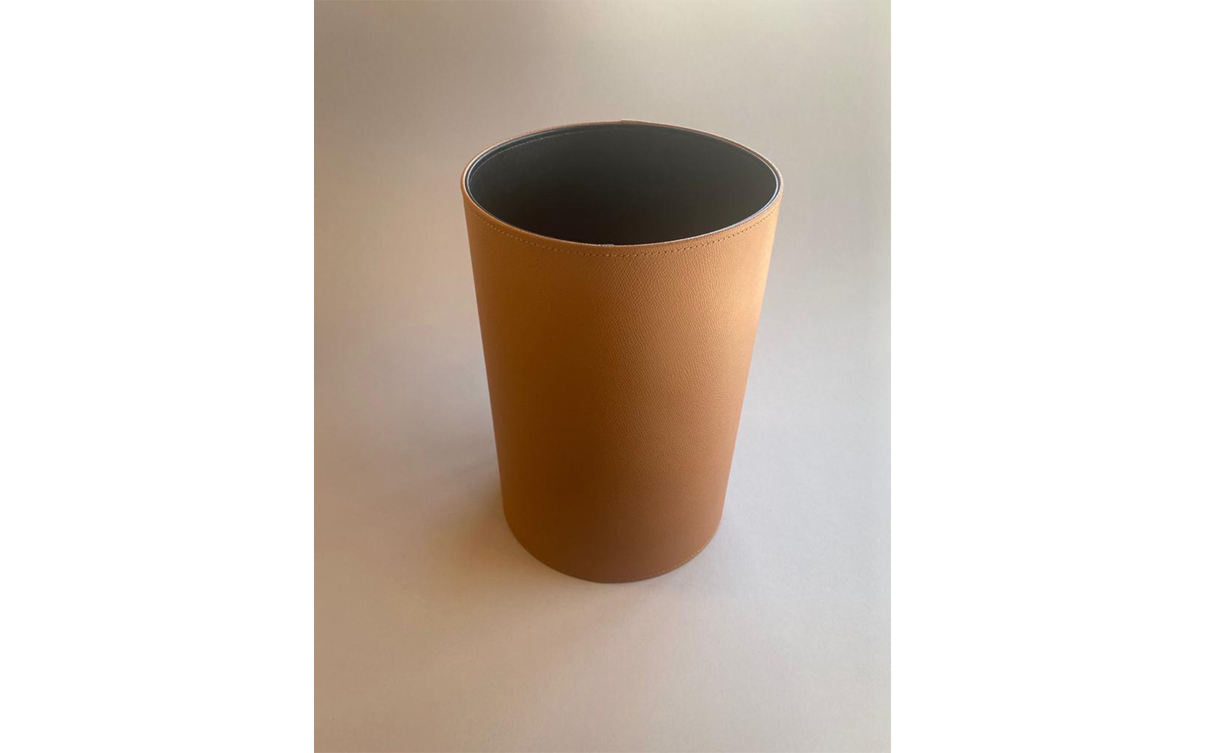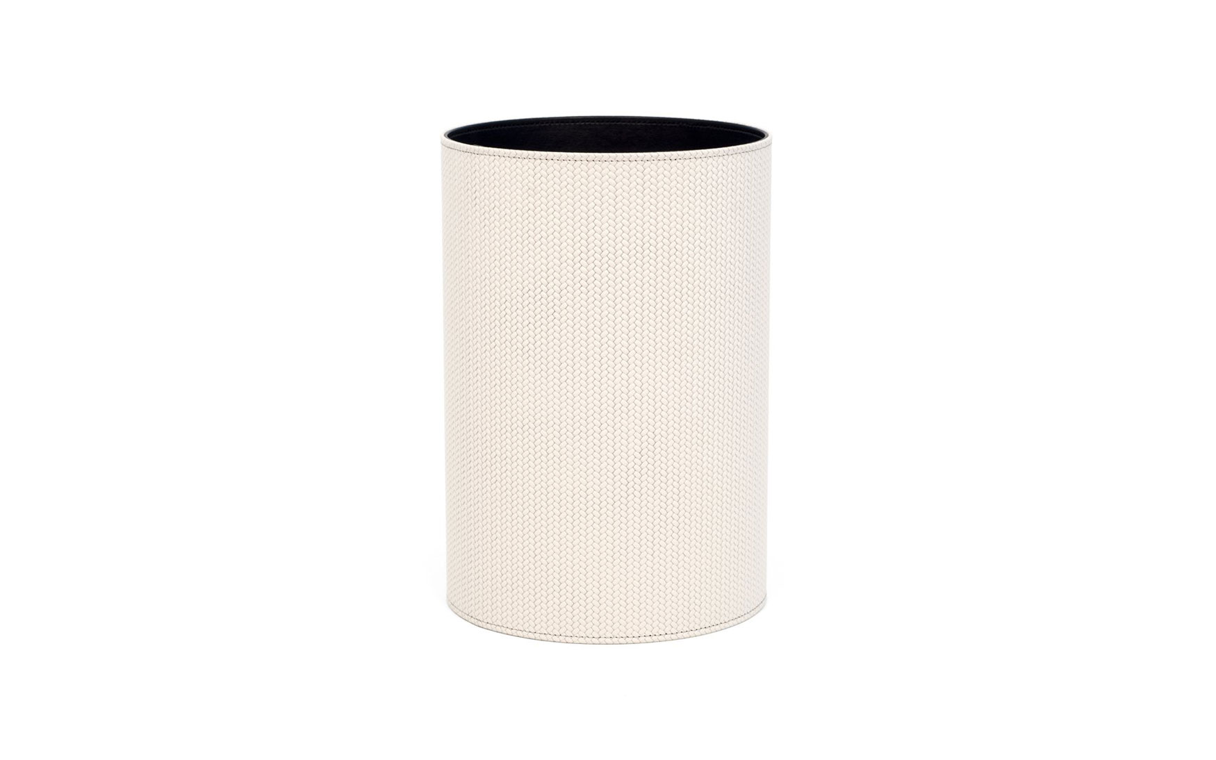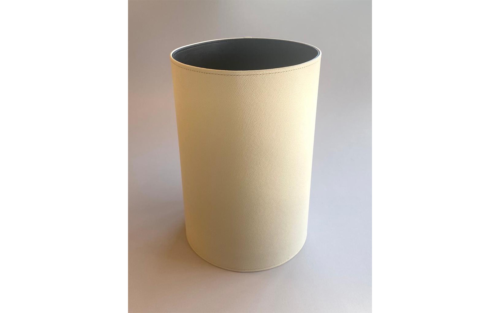 100% Genuine Italian leather round bins available in multiple colors and leather finishes.