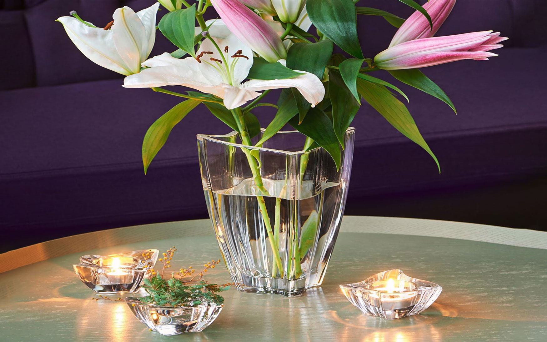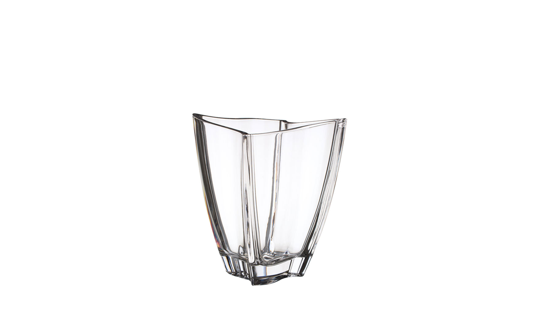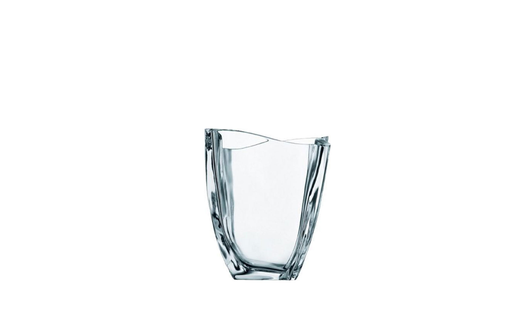 Crystal glass vase by Nachtmann with an edgy and curvy rim that stylizes any type of bouqet.