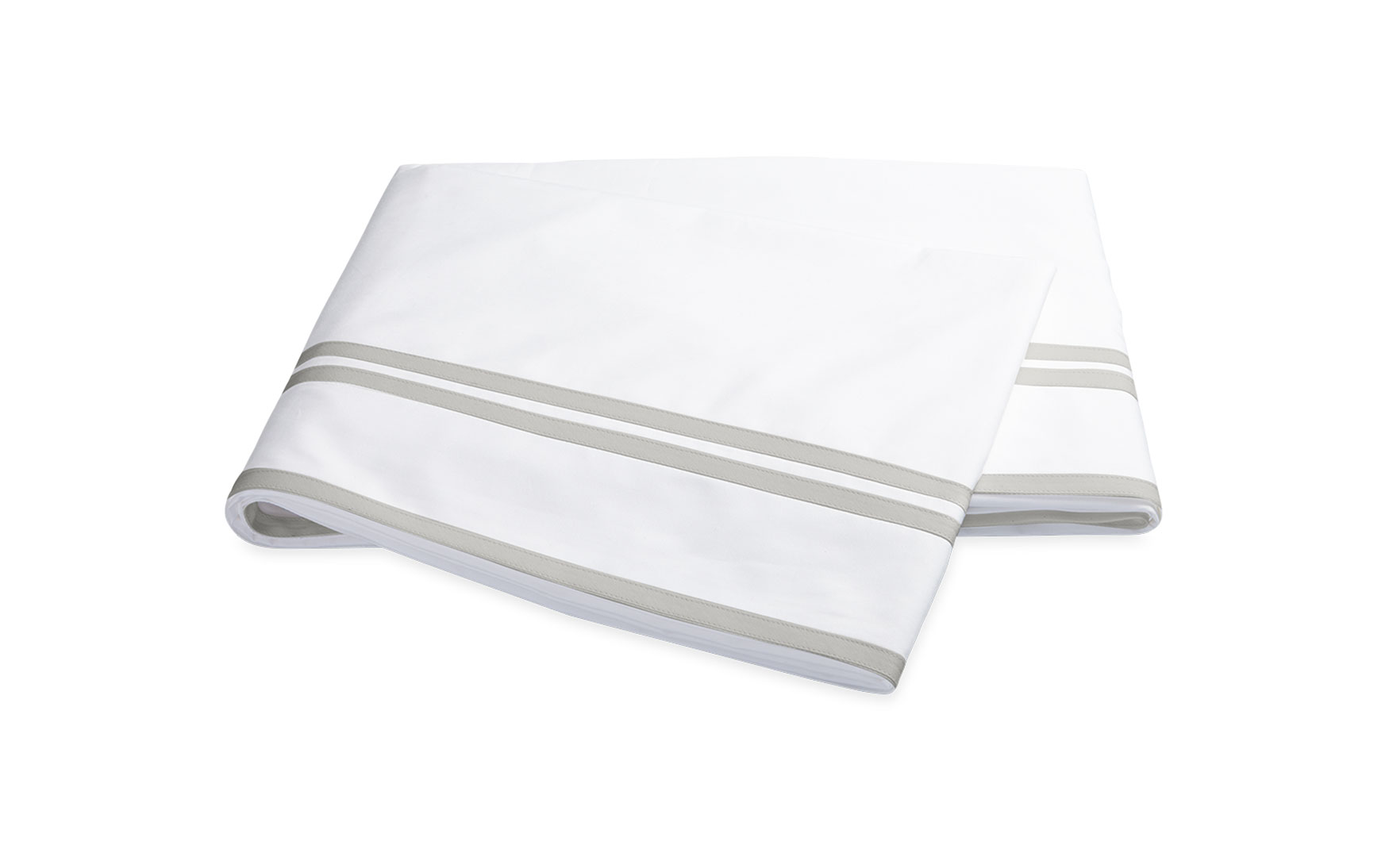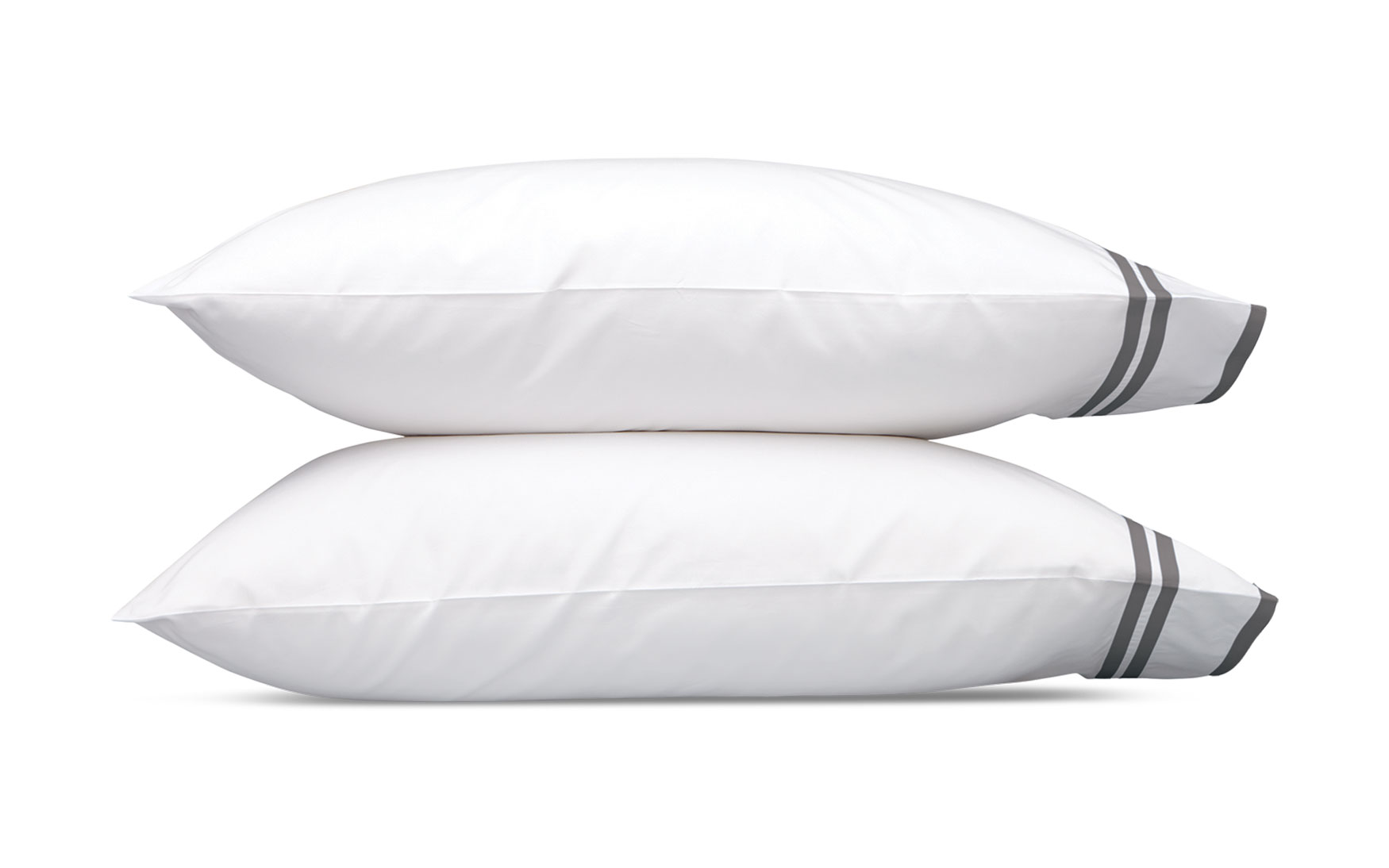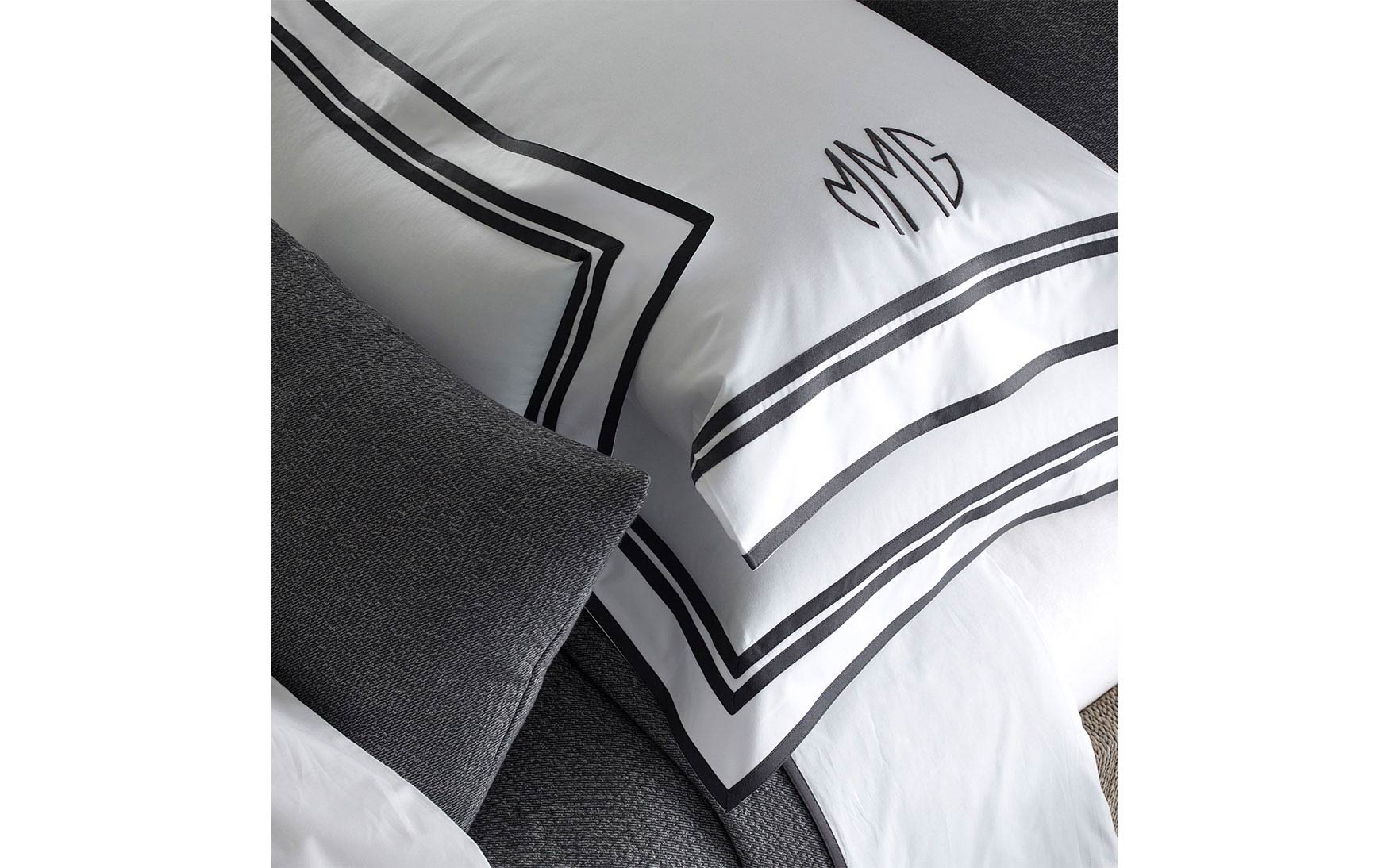With three rows of bold, eye-catching trim in a range of vibrant hues, Meridian gives our classic 350 thread count Sierra long-staple cotton percale sheeting a dramatic lift, creating a timeless look for a contemporary home.