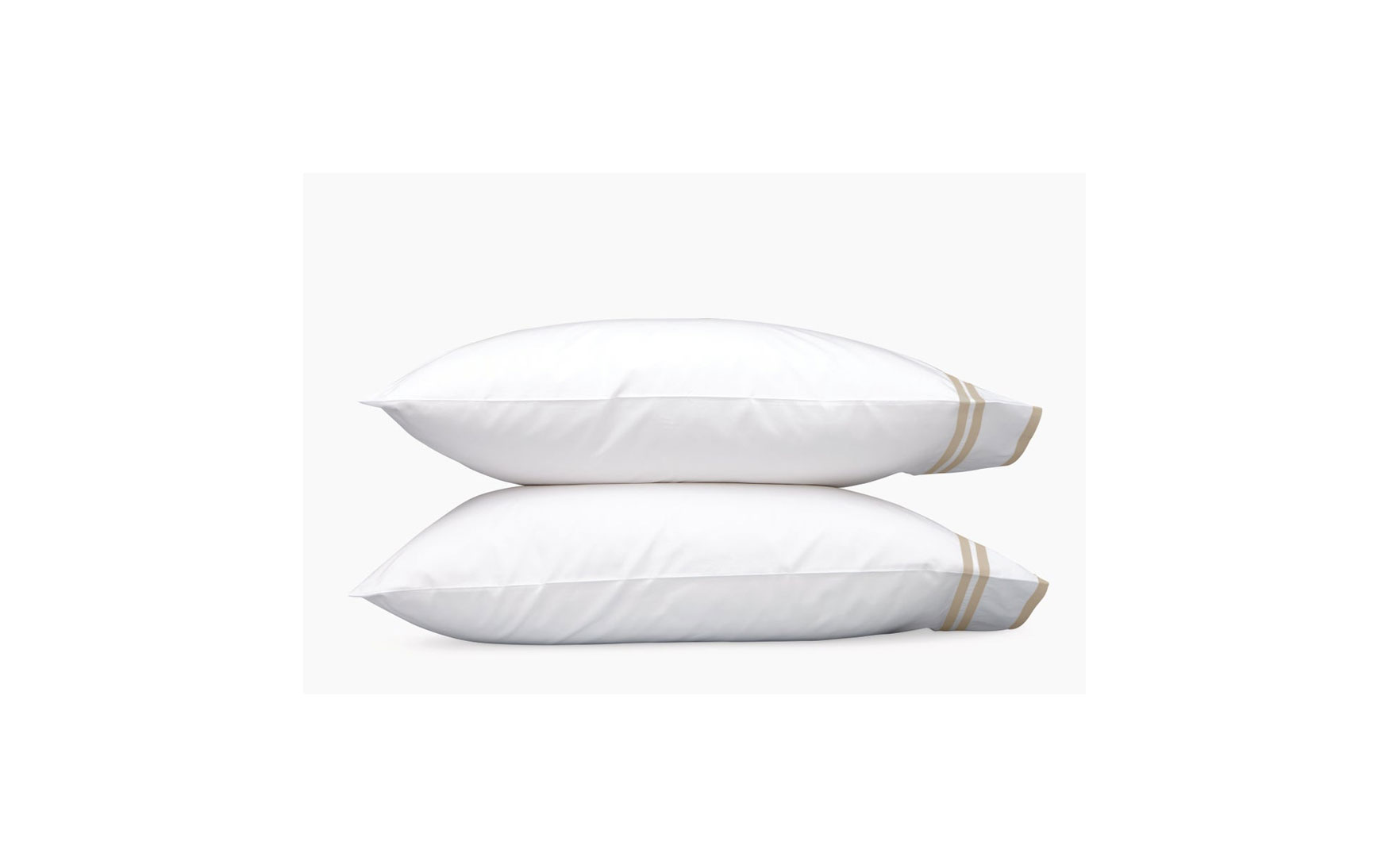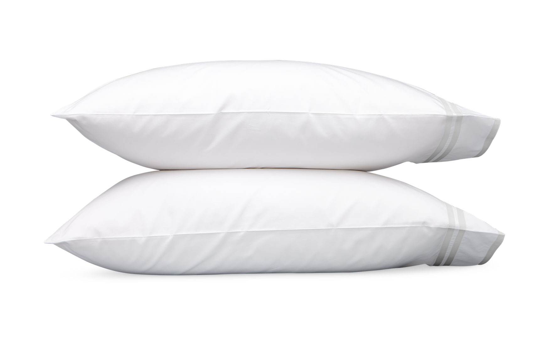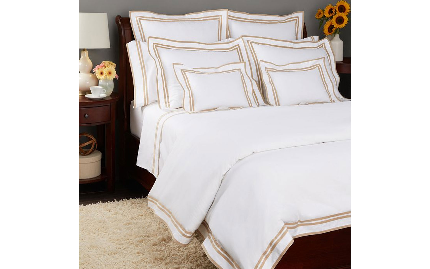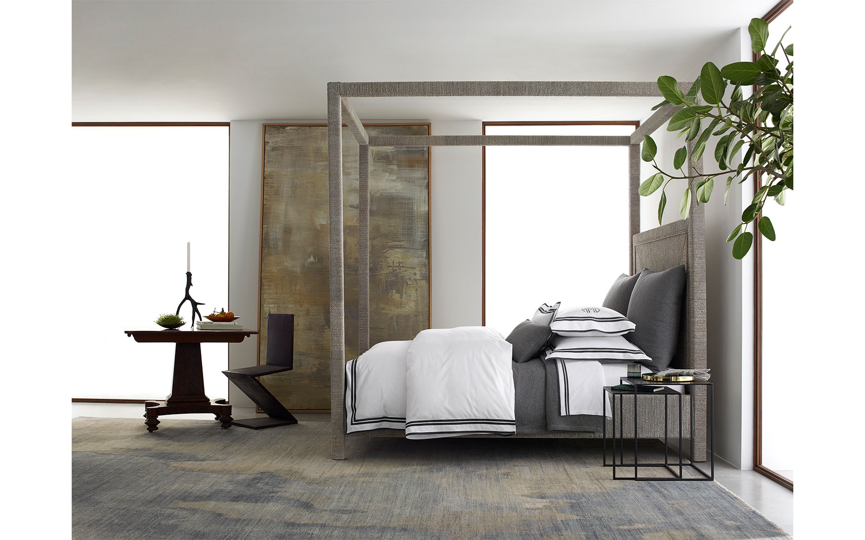 With three rows of bold, eye-catching trim in a range of vibrant hues, Meridian gives our classic 350 thread count Sierra long-staple cotton percale sheeting a dramatic lift, creating a timeless look for a contemporary home.