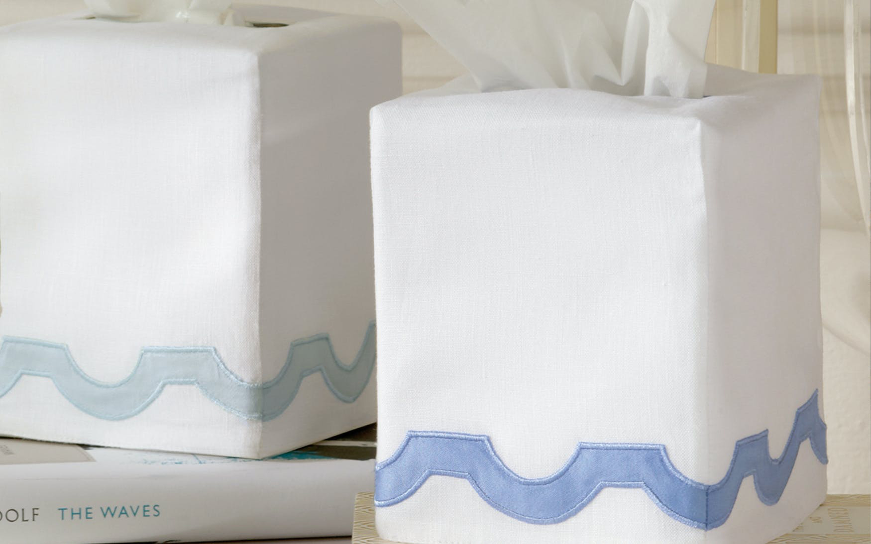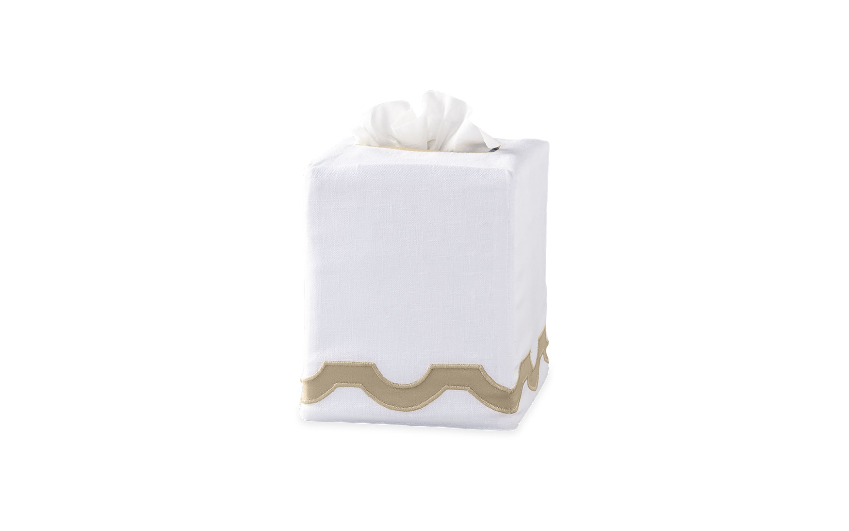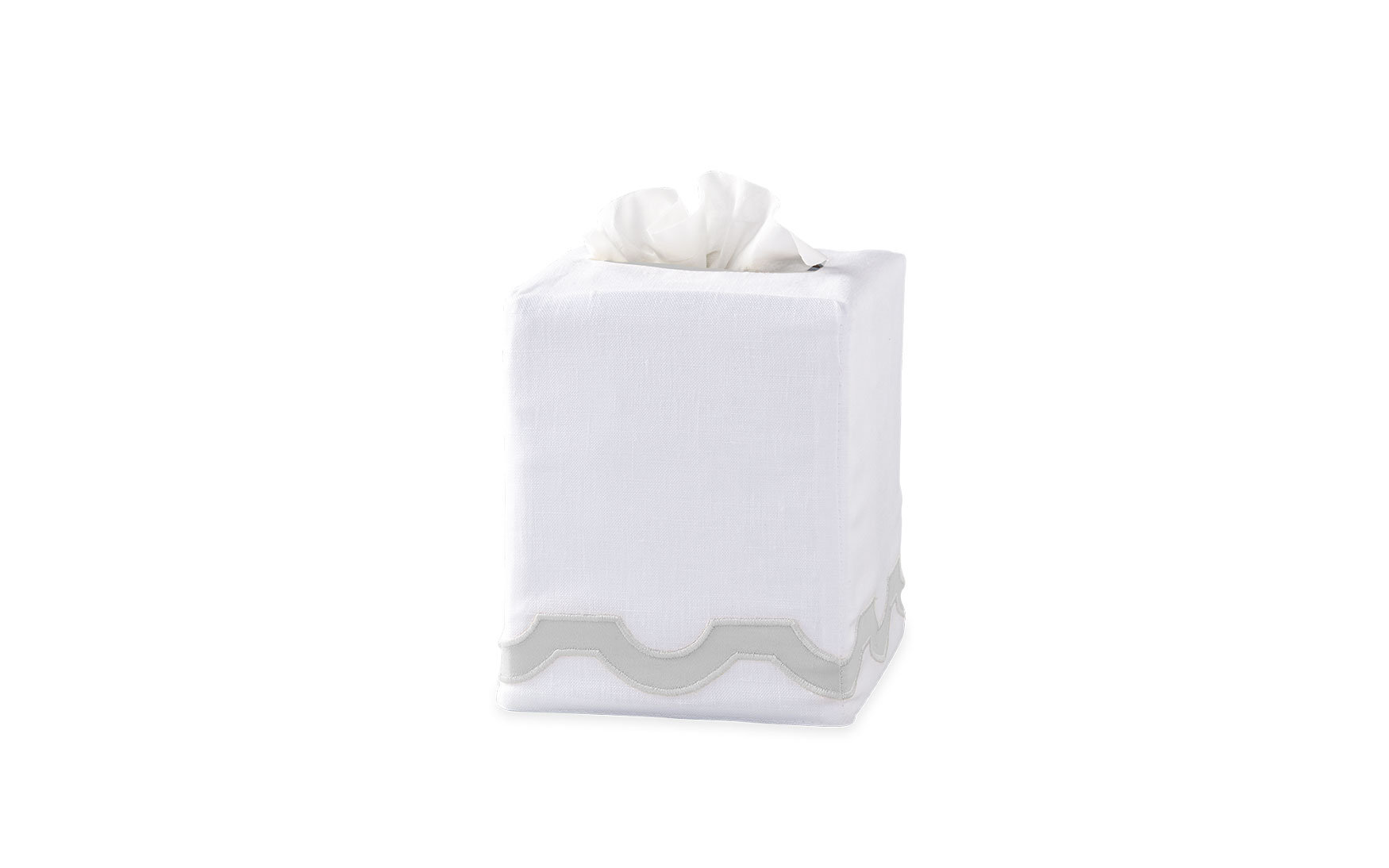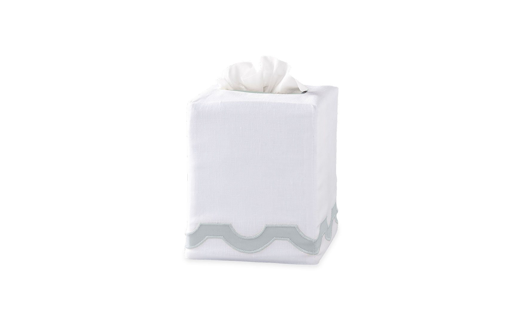In 100% linen with a sateen appliqué trim, the Mirasol tissue box cover pairs with the top-selling bedding collection of the same name. In a home where no detail goes unconsidered, this playful and sophisticated style makes a beautiful addition to a bedroom or bathroom.