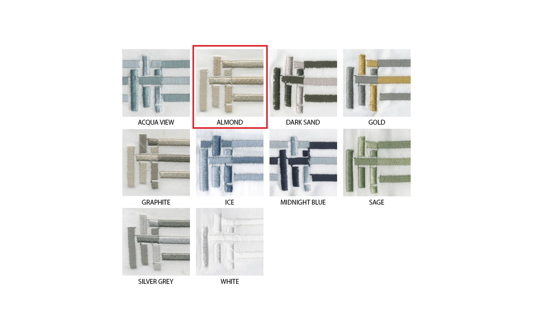 Embroidered in two colors of your choosing. Simple and contemporary two-tone embroidery line design.