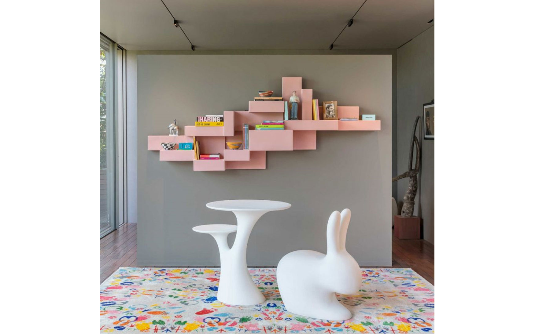 Hop on this extraordinary one! Brightly coloured and boldly shaped, this chair doesn’t want to burrow away.Rabbit chair, designed by Stefano Giovannoni can be used either by leaning against the ears or on the opposite side, riding it and resting the forearms on its ears. The most authentic Qeeboo’s hat tricks.