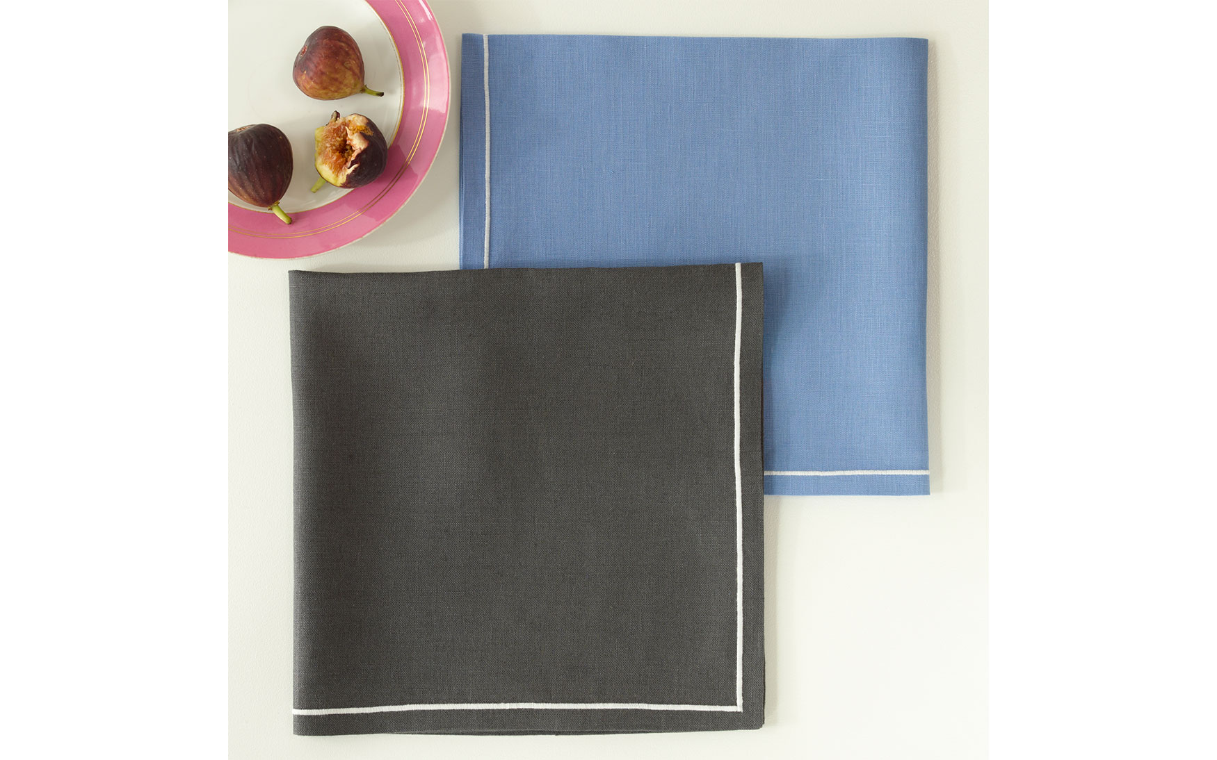 A colorful base and white finishing details make our Satin Stitch Napkins an exceptional addition to our tabletop collection. Crafted from luxurious 100% linen and available in a range of classic colors, they provide contrast while coordinating beautifully with pieces from our Scallop, Border, and Double Border lines.
