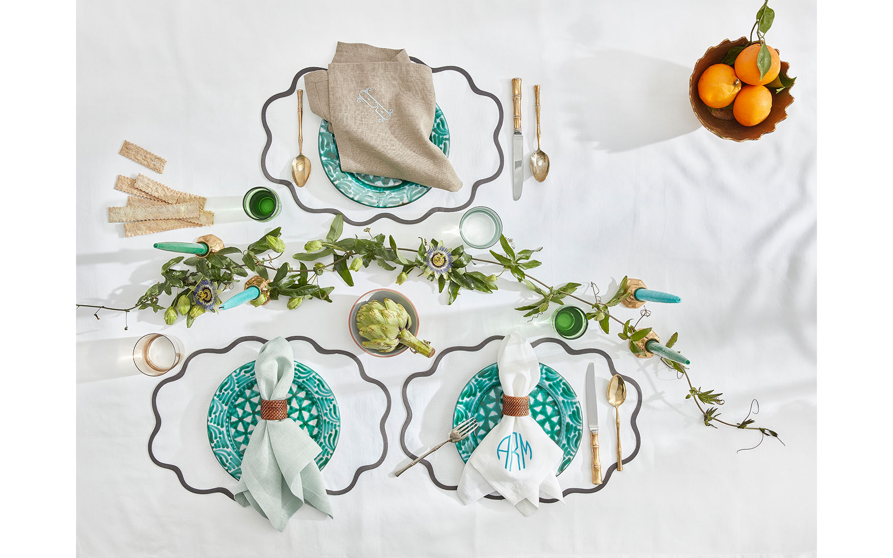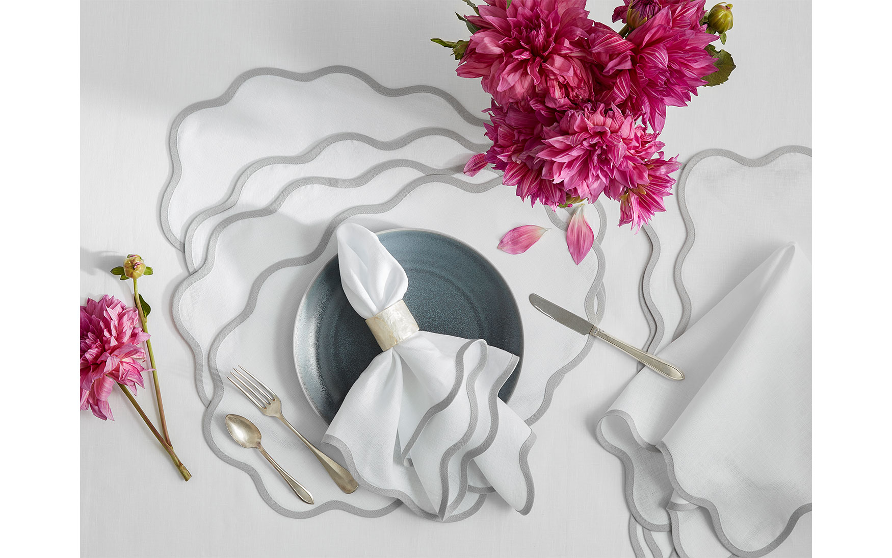 Set a charming and chic scene with our Scallop Edge Napkins and Placemats, which are crafted from 100% linen and feature our signature taped border detail. Available in five classic colors, Scallop Edge is designed for mixing and matching with different hues and styles to create a unique tablescape of your own.