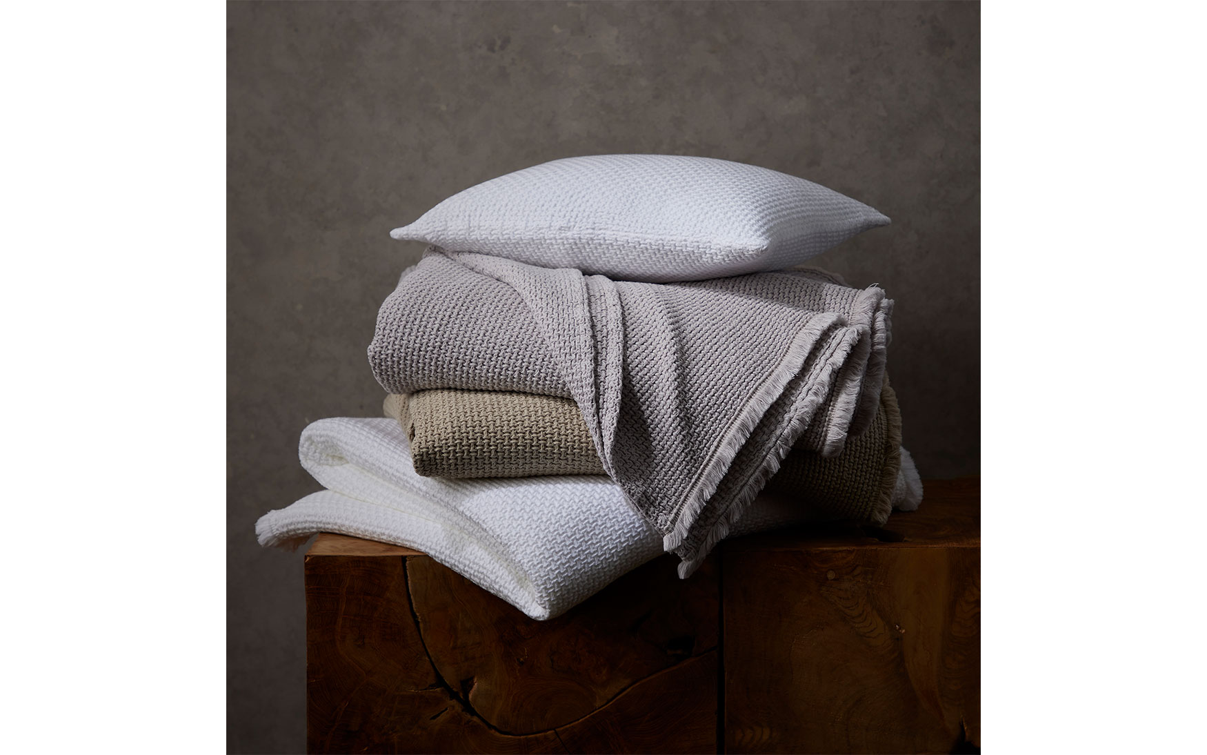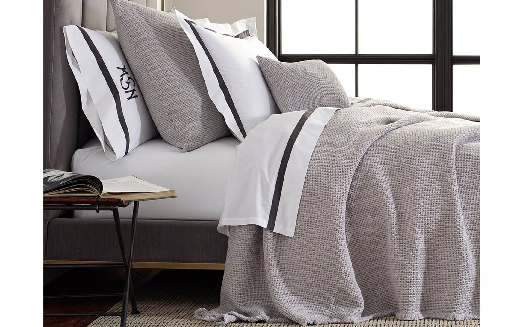 Selah has the lightweight simplicity you look for in a warm-weather coverlet, but its intricate waffle weave makes it something much more special. Densely woven, yet with a soft texture and drape, it's a beautiful layering piece, accented with a rich applied fringe and knife-edge shams.