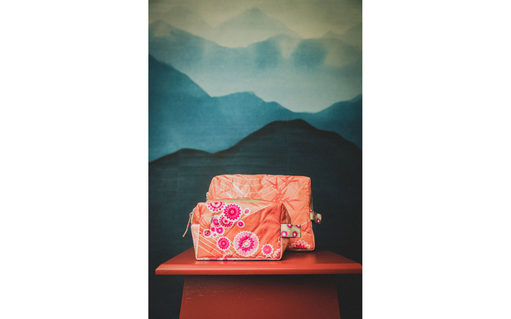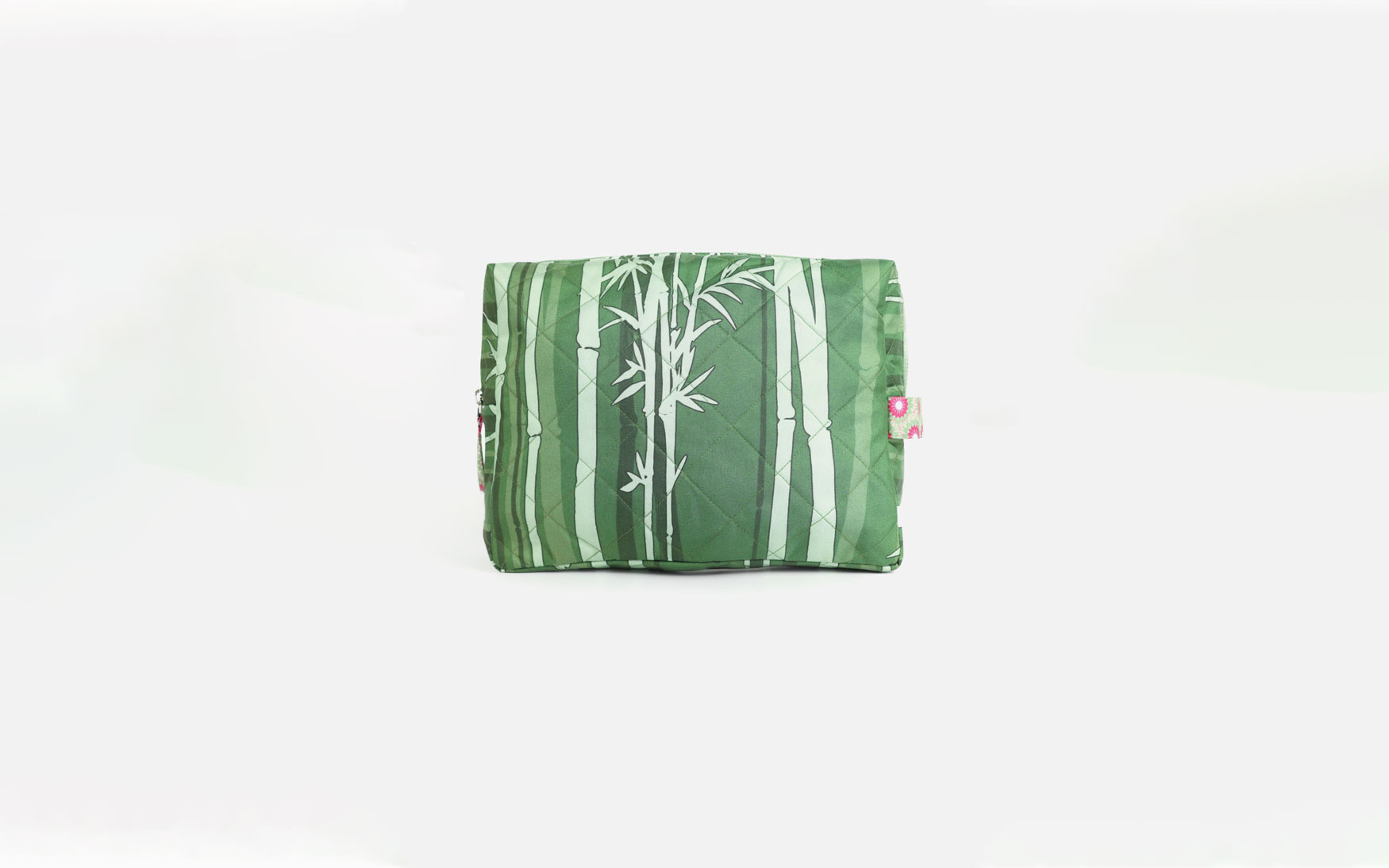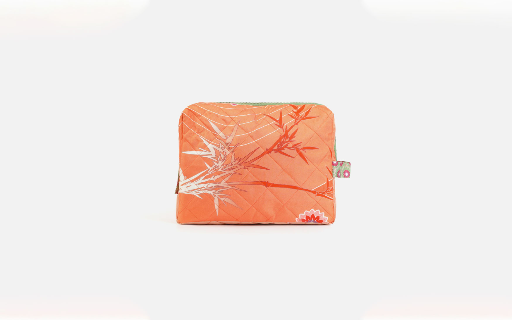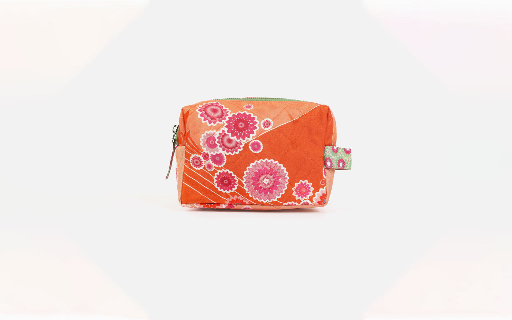 Stay organized on the go with this cute and stylish floral quilted pure silk cosmetic pouch.