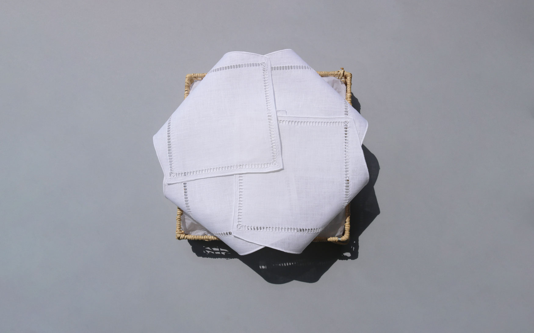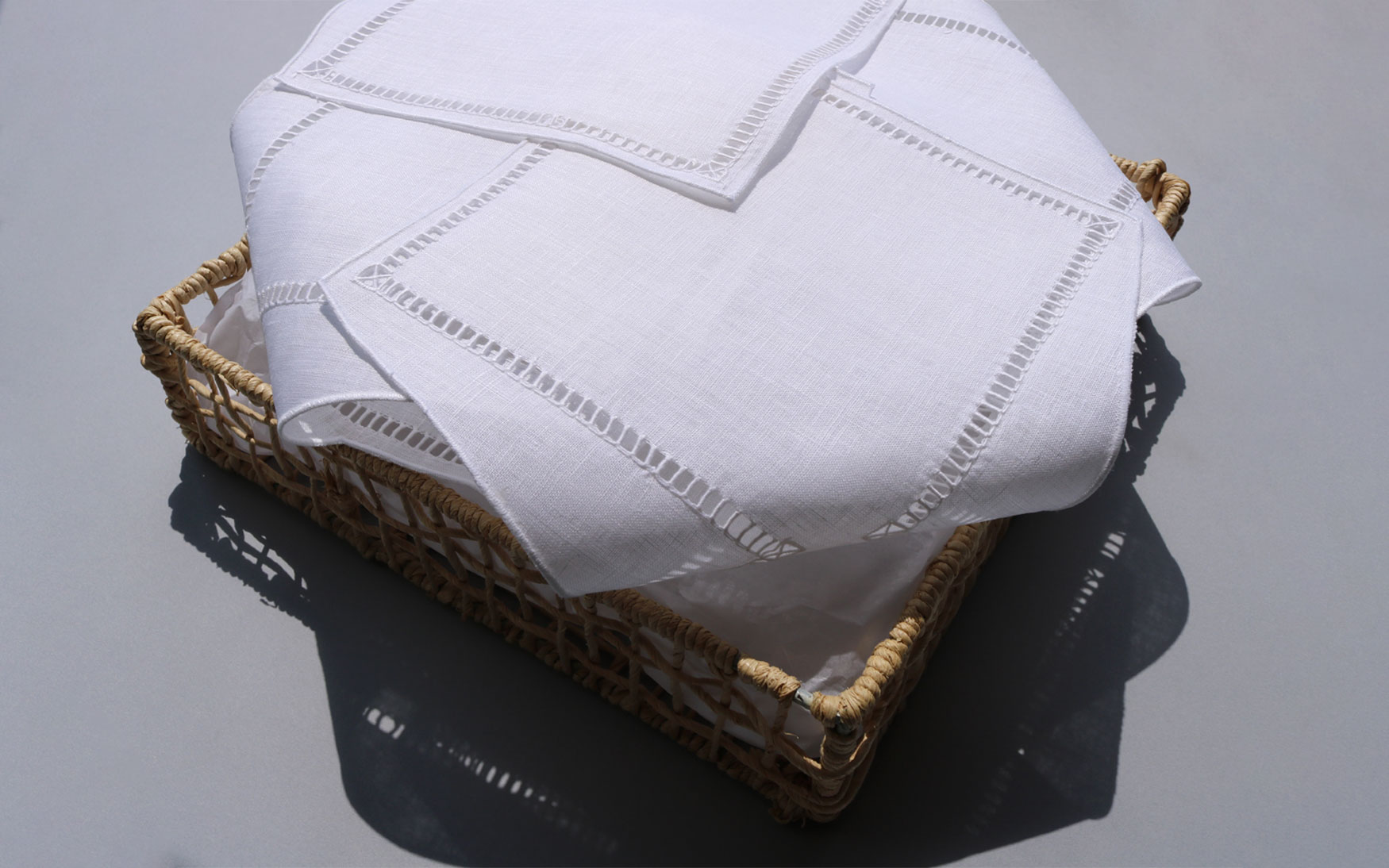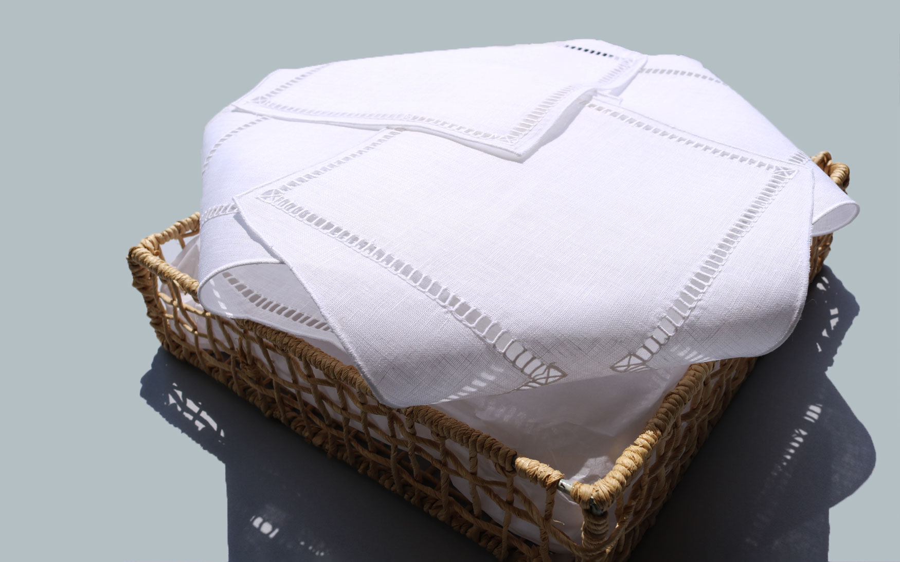 Elegant single ajour 7mm linen collection have placemat & napkin set and bread covers.