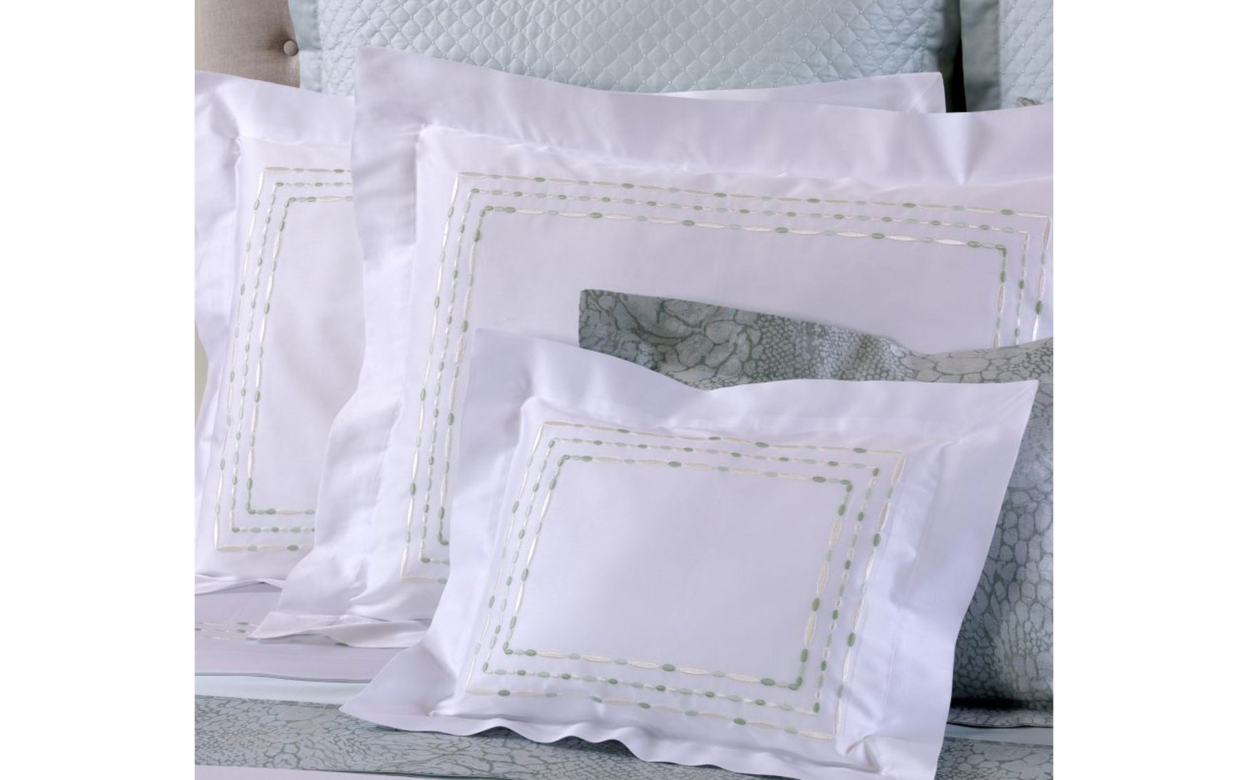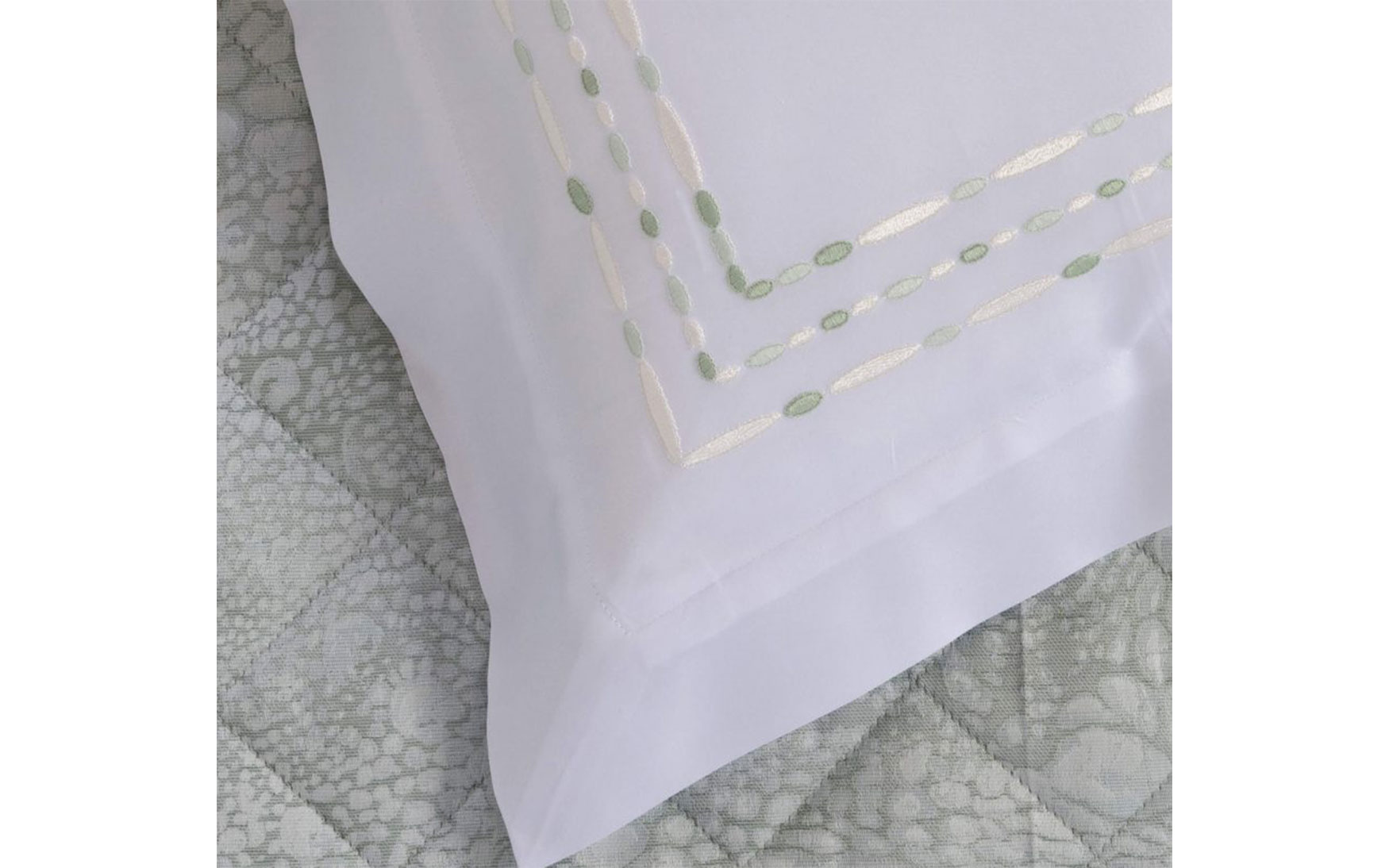 A simple classic and minimalist design embroidered on white Raso Sateen.