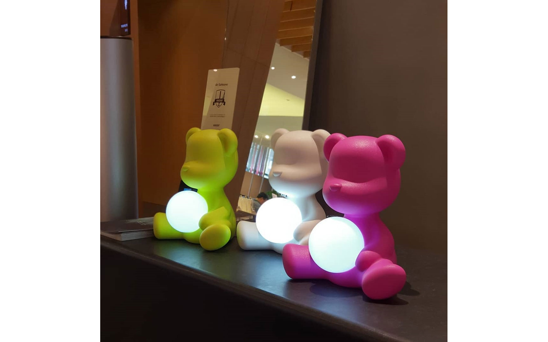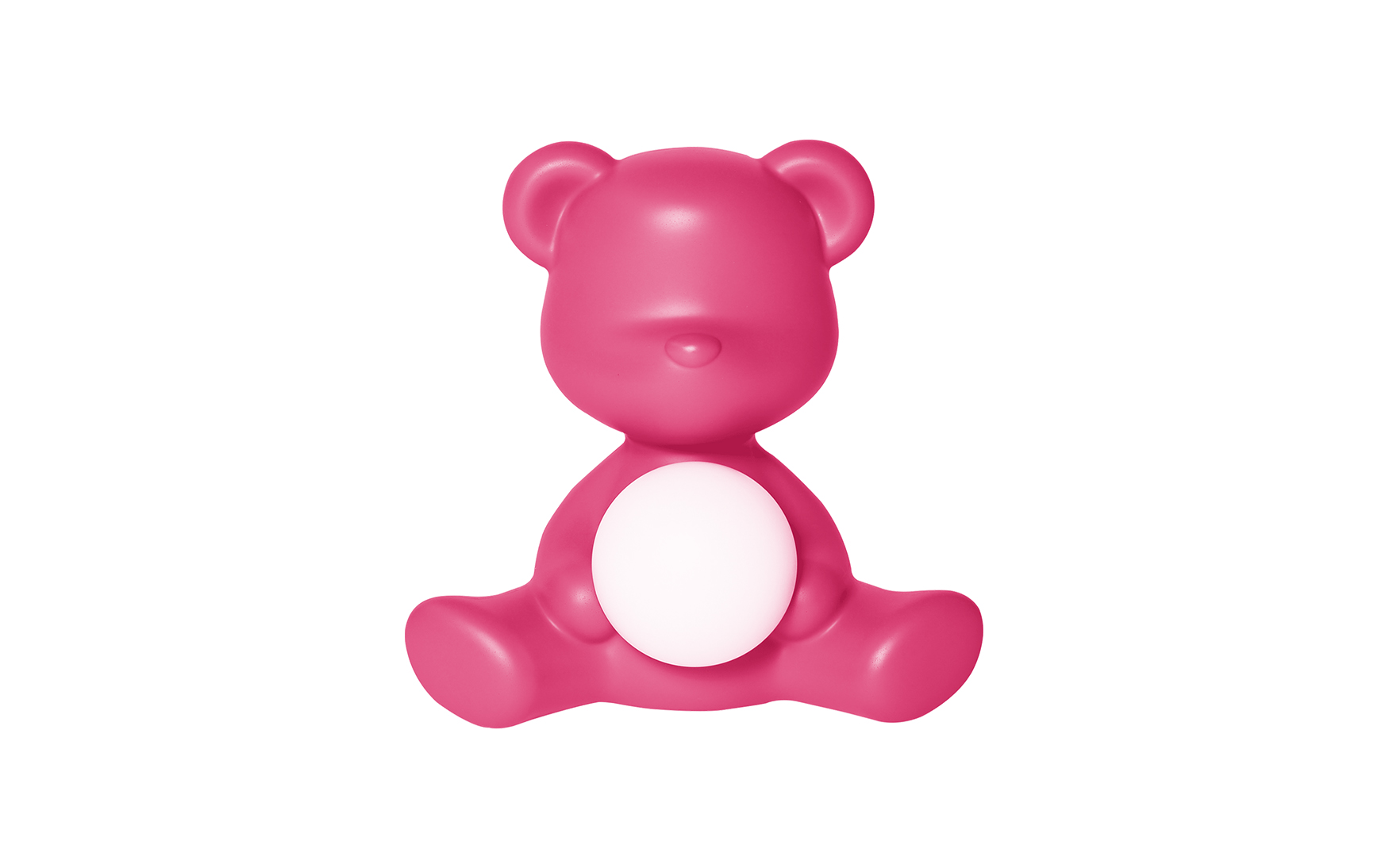 The teddy bear, the emotional object par excellence, is reinterpreted by Stefano Giovannoni for Qeeboo and becomes a table lamp. The new pop icon, tender, and fun at the same time was designed in two versions, Boy & Girl. Teddy Girl, more timid and delicate, brings to light the feminine soul of the famous little bear, embracing a small luminous sphere. The luminous bear thus expands the large Qeeboo family made of objects out of the ordinary which play with colors and different finishes. Teddy Girl is available in velvet - softer to the touch - in color variations ranging from warm to cold tones.