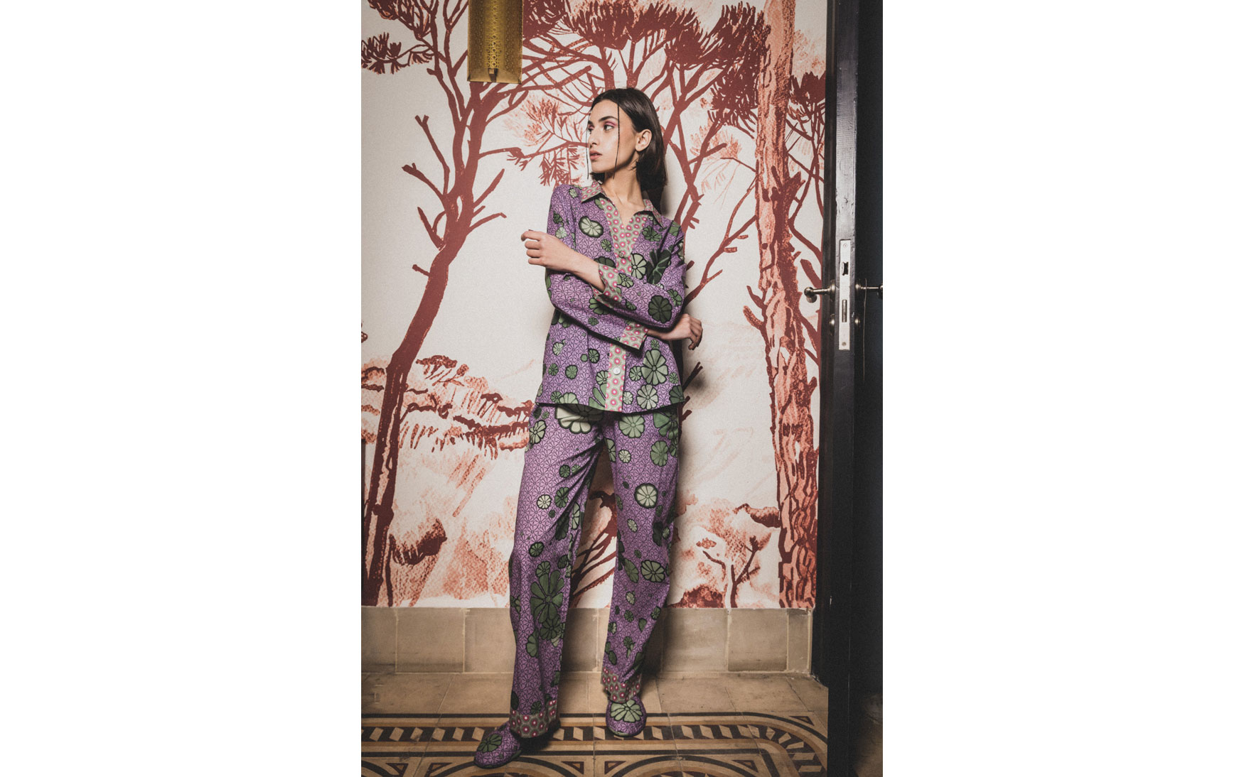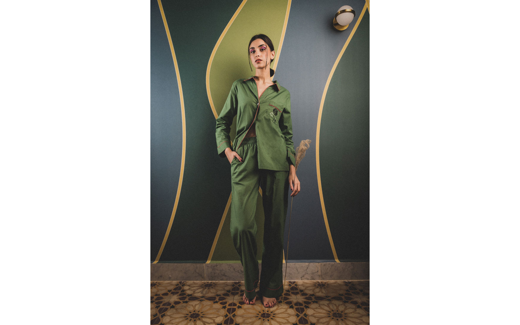 The relaxed shirt and pants are made from cotton that feels exceptionally soft.