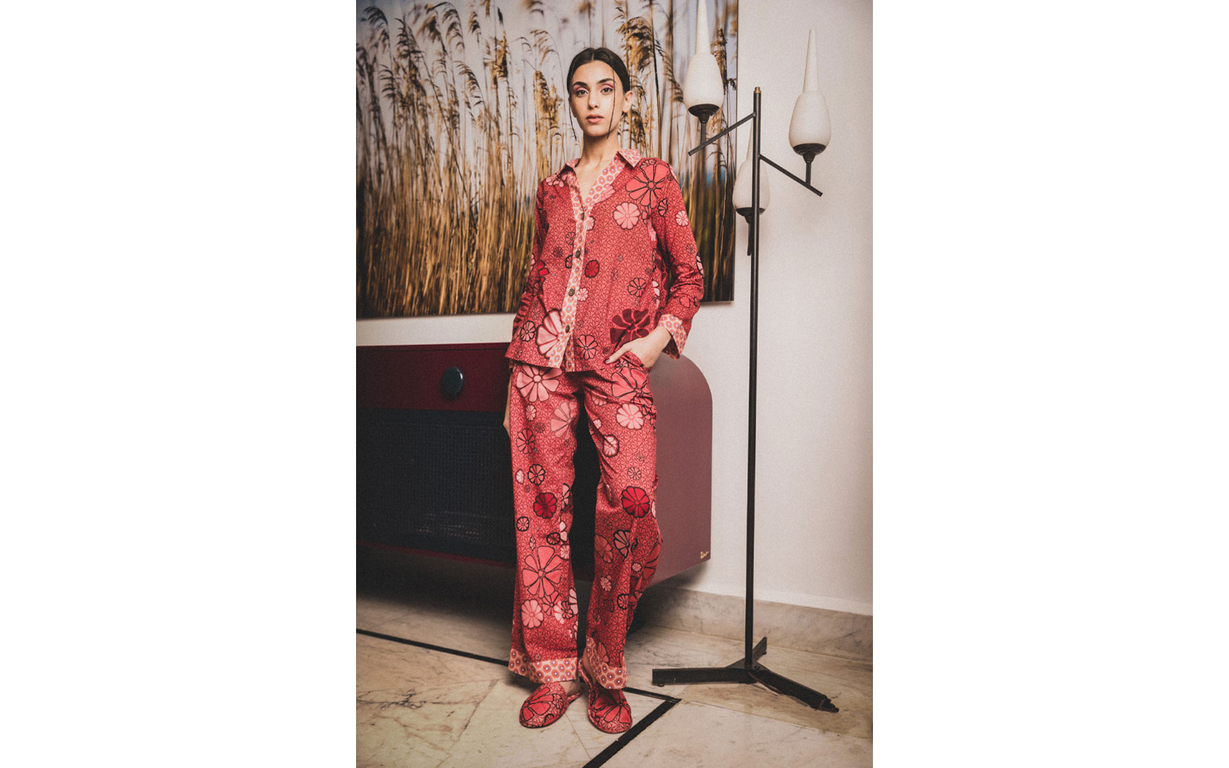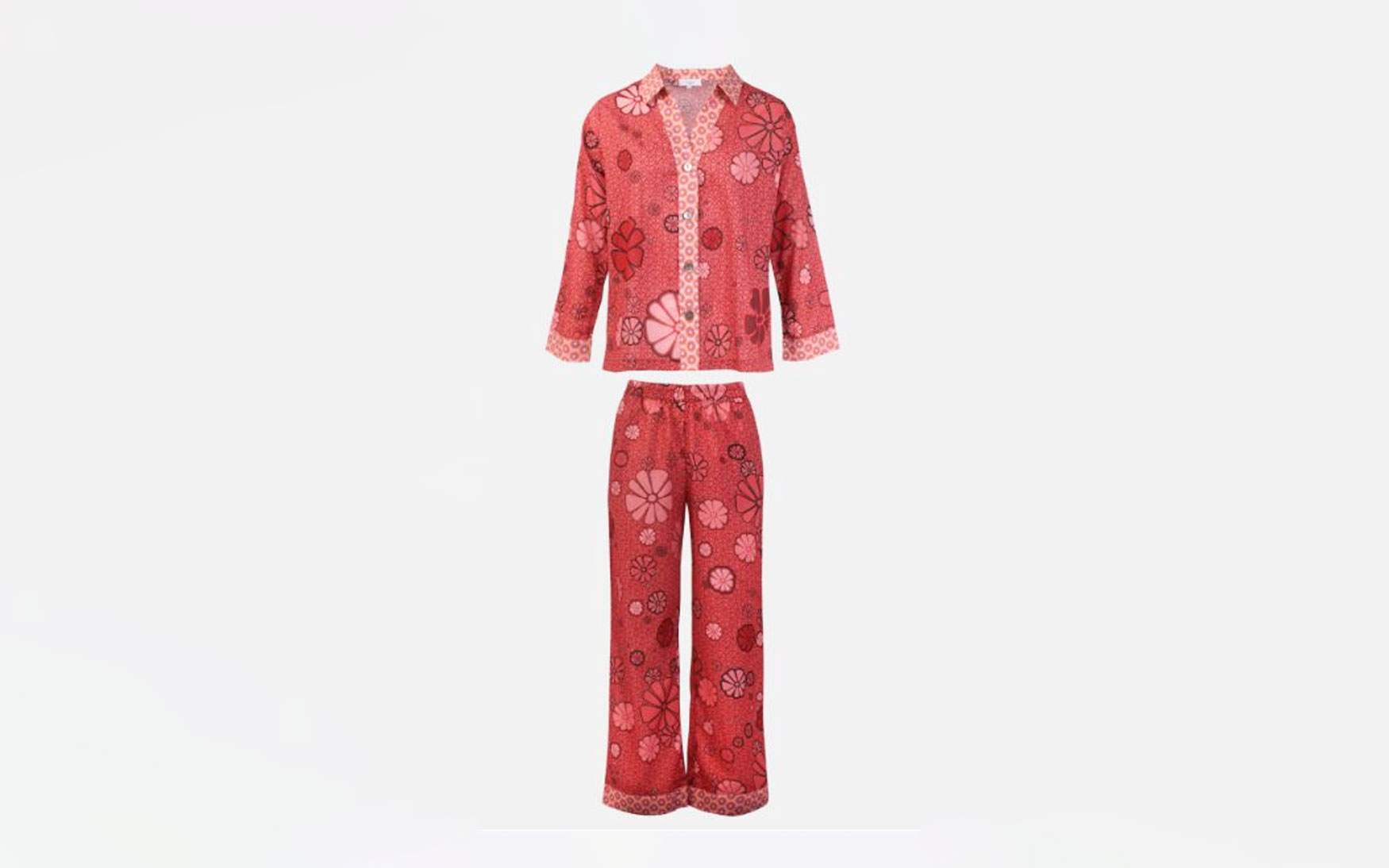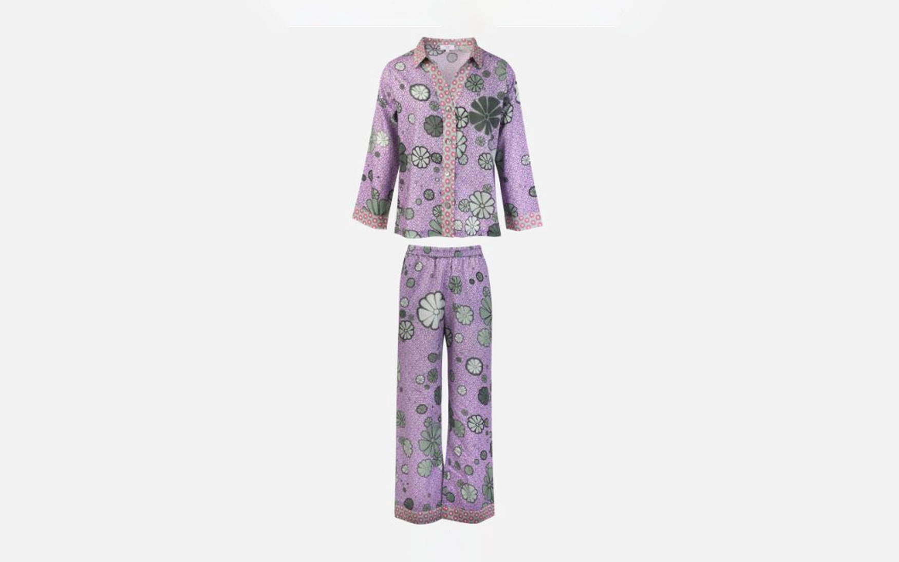 A beautiful long sleeve pure cotton pajama top and trouser set.