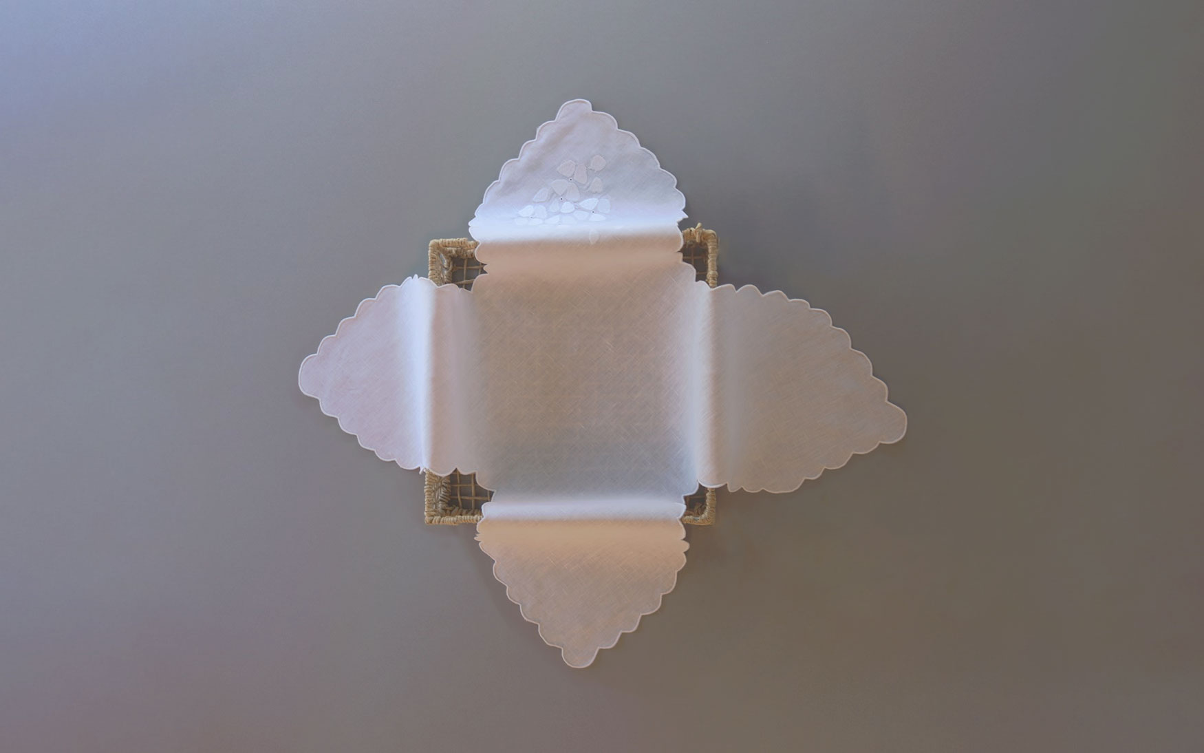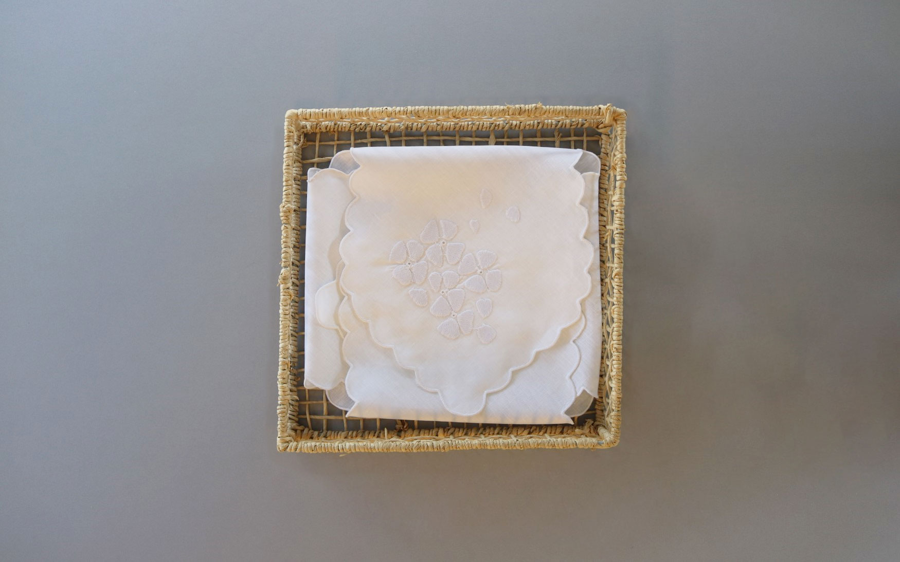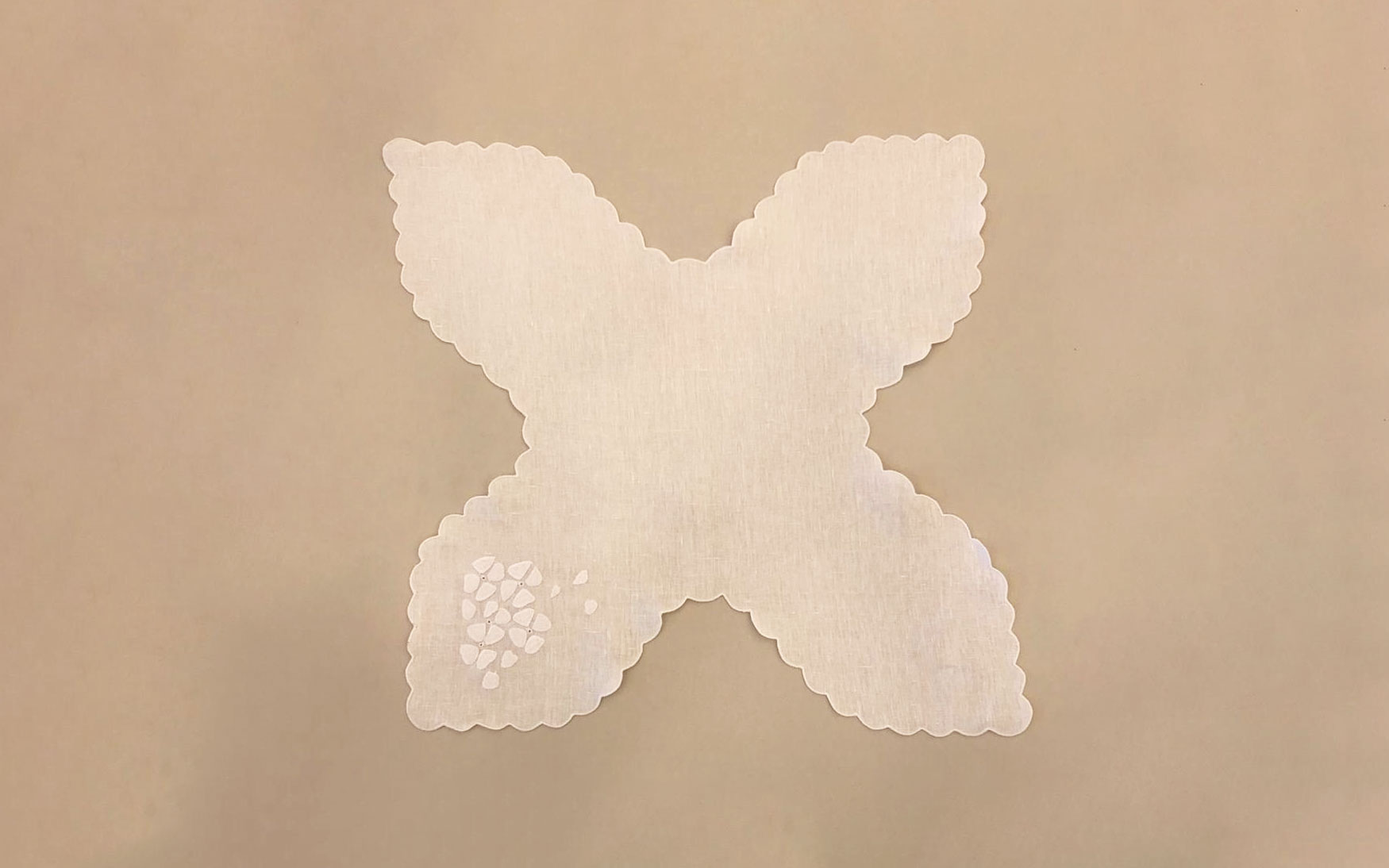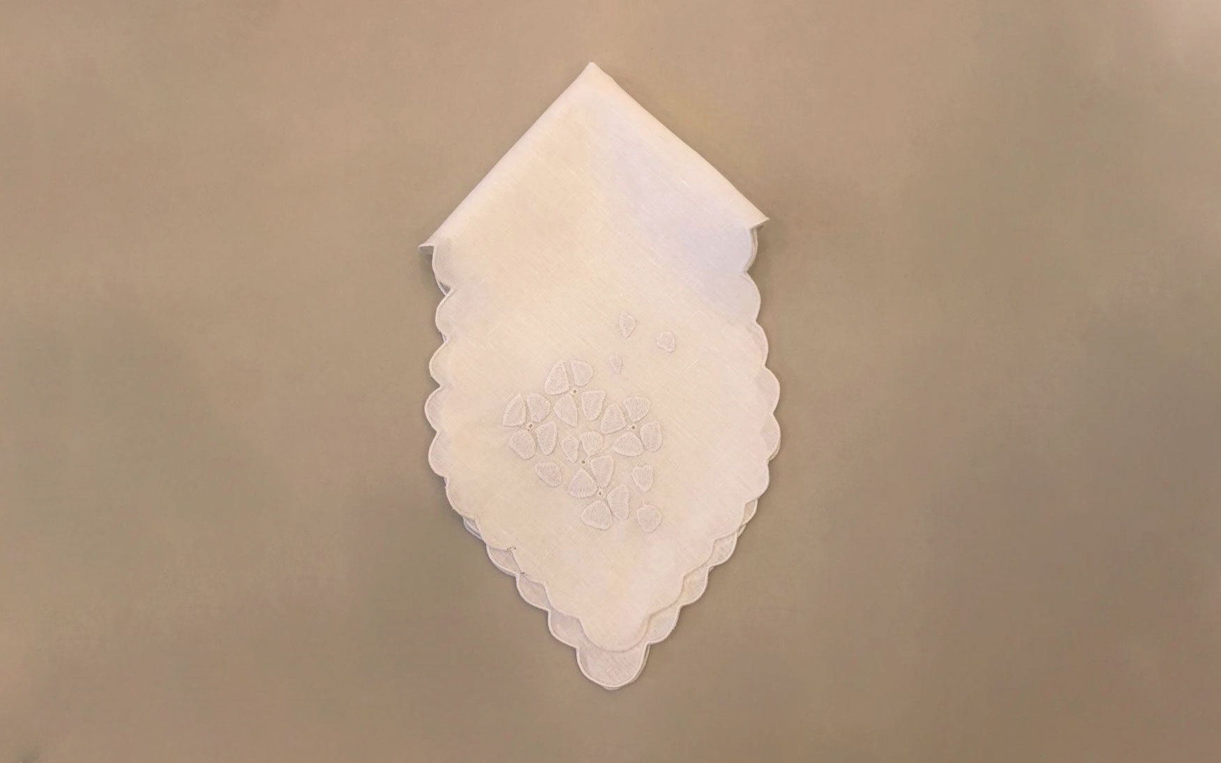 The cloth is embroidered in one corner with beautiful white color flower petals.