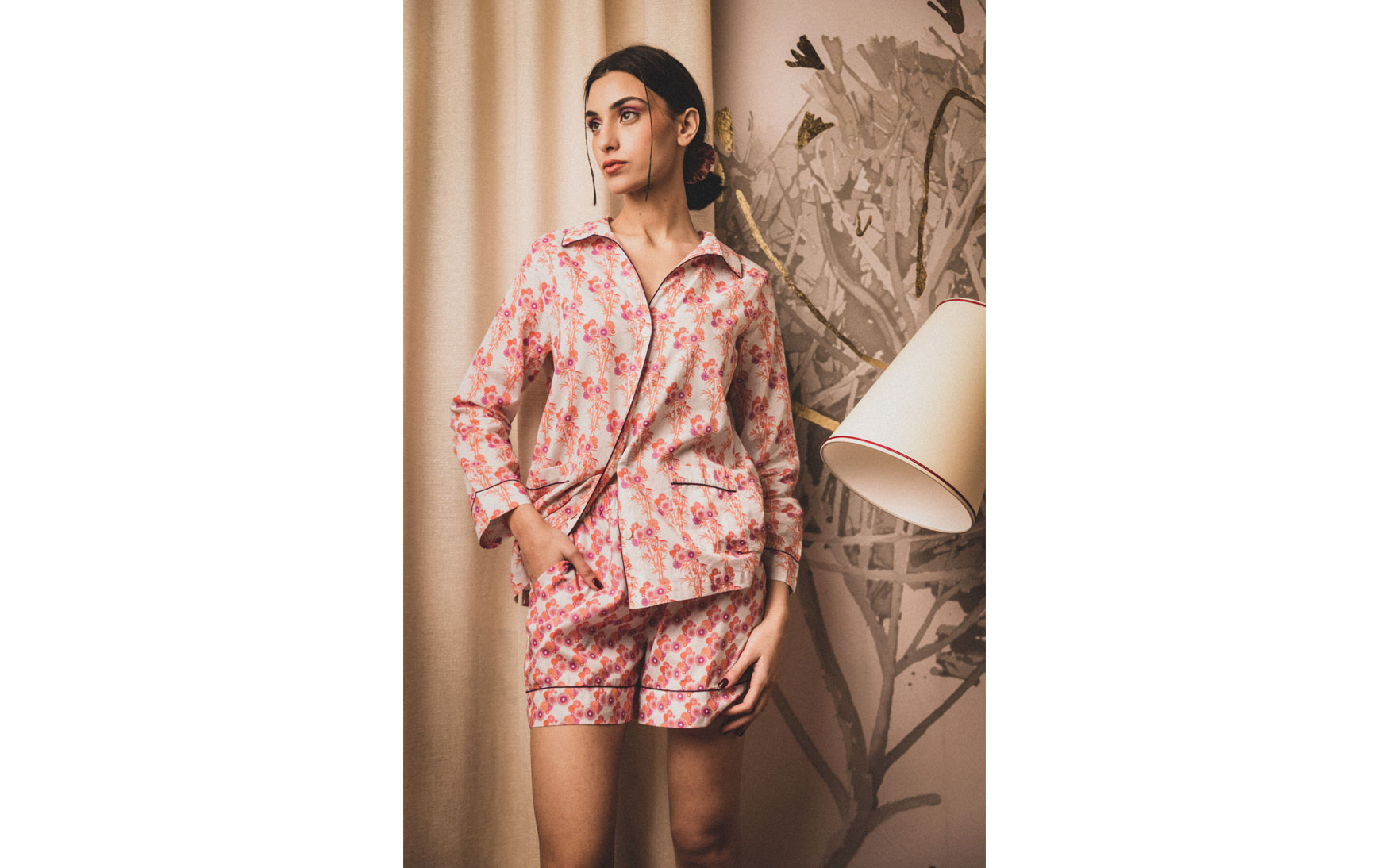 A beautiful long sleeved, shorts bottom pajama set made in the finest cotton for a comfortable and breathy night in.